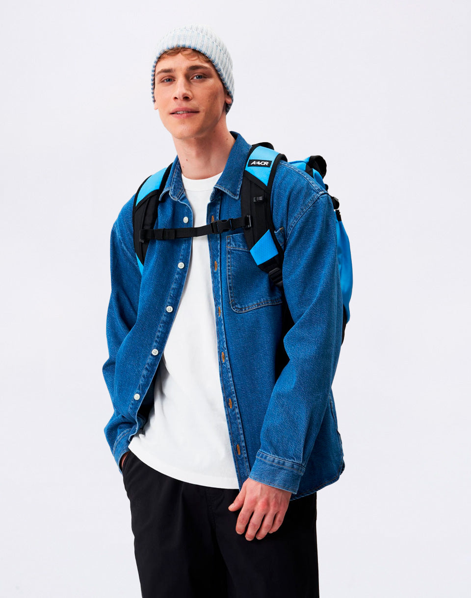 External materials for the production of backpacks, bags and other travel accessories of the Aevor brand are made up of at least 50% recycled PET bottles. For the new spring / summer 2020 collection, external materials with a 100% share of recycled PET bottles are used. Furthermore, only organic cotton is used.