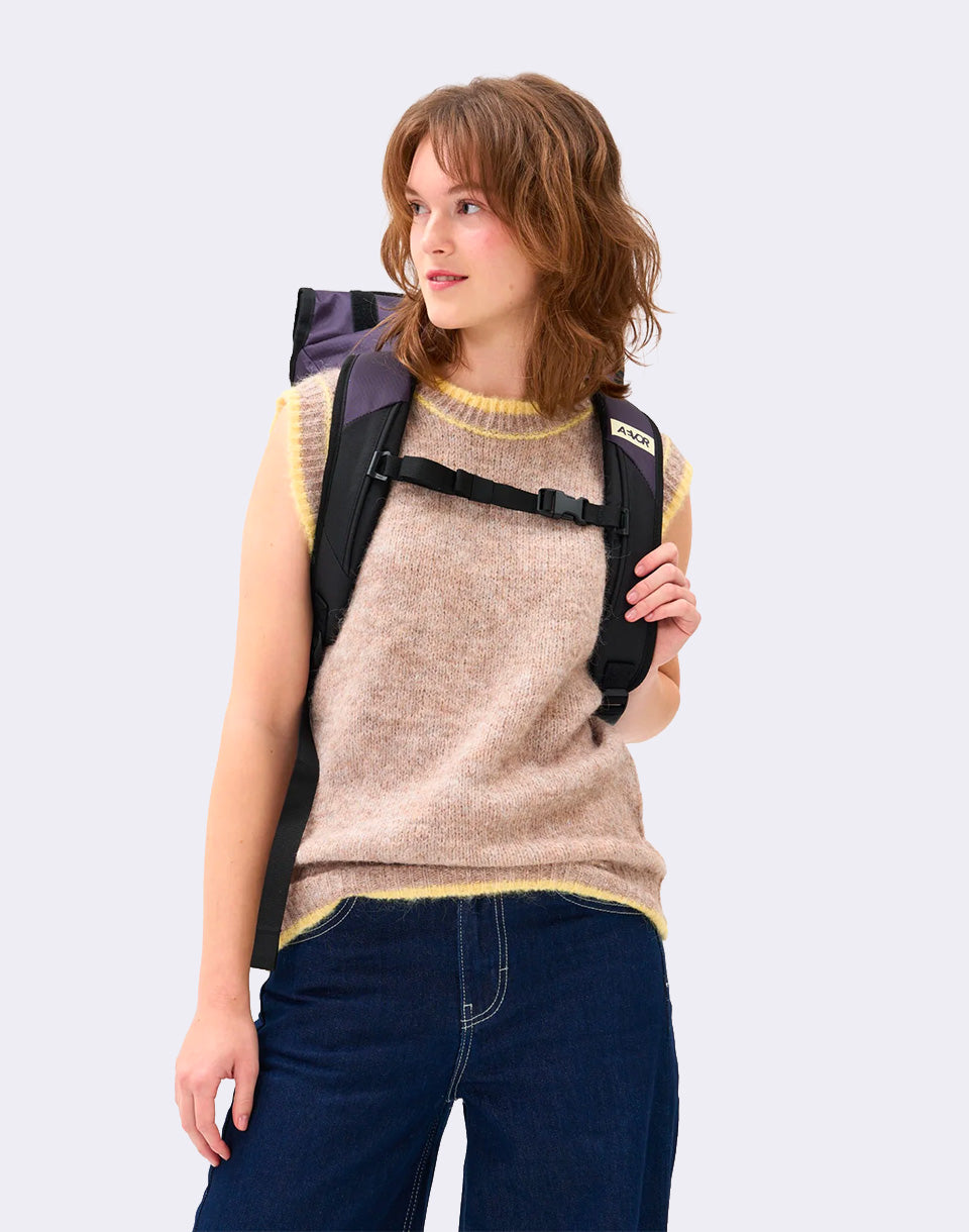 Aevor Trip Pack - a unique rolltop backpack will delight you with a water-repellent upper made of recycled PET bottles, a velcro system for volume regulation and a padded laptop pocket.