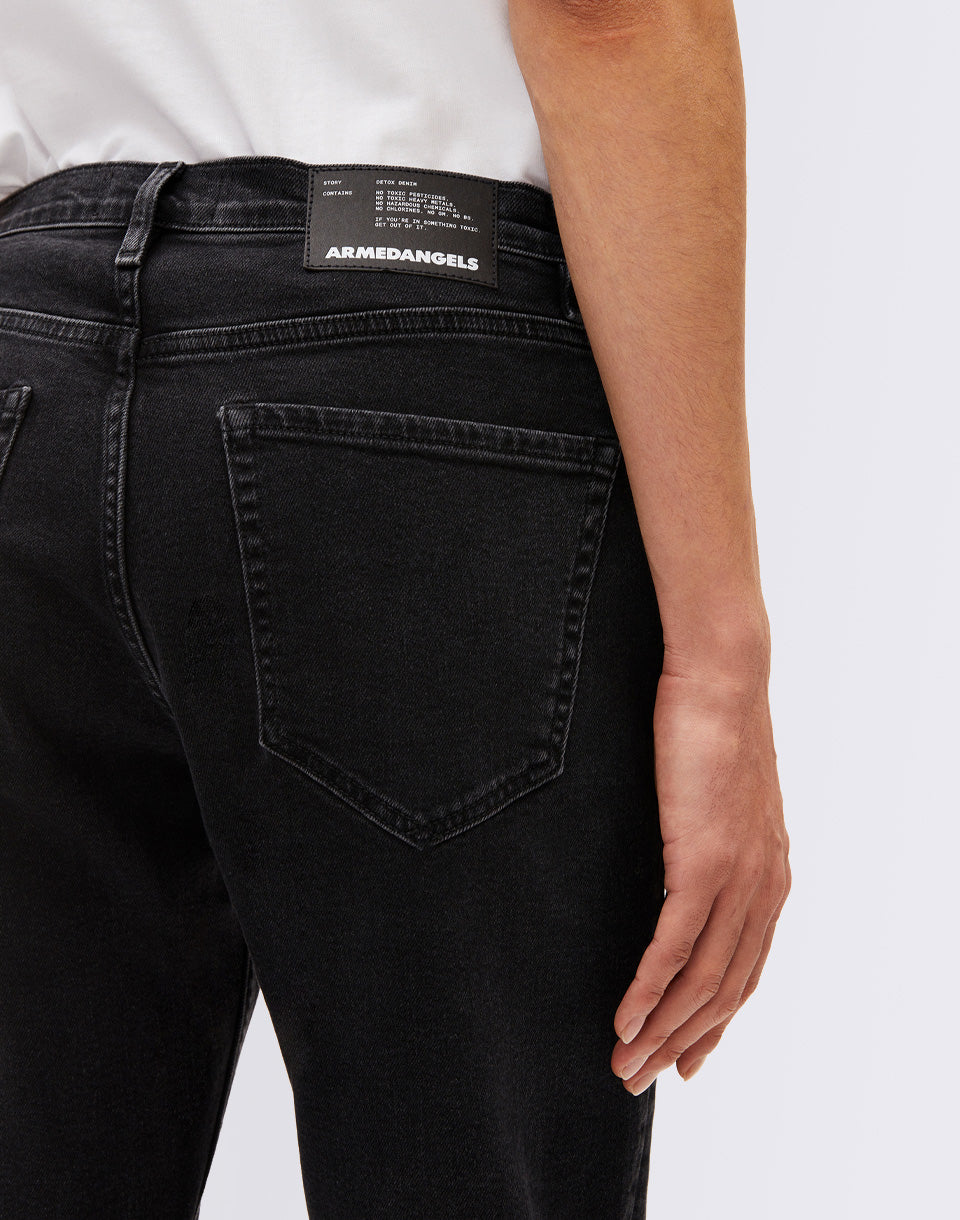Armedangels Aarjo Tarpa - men's denim trousers, looser at the waist and tapering to the ankles, made from a blend of recycled cotton and lyocell.