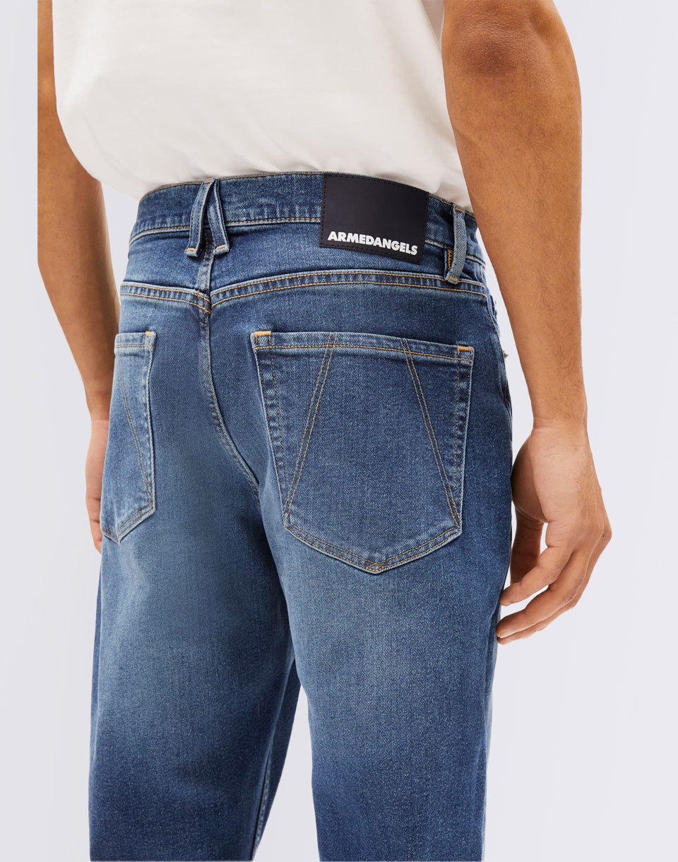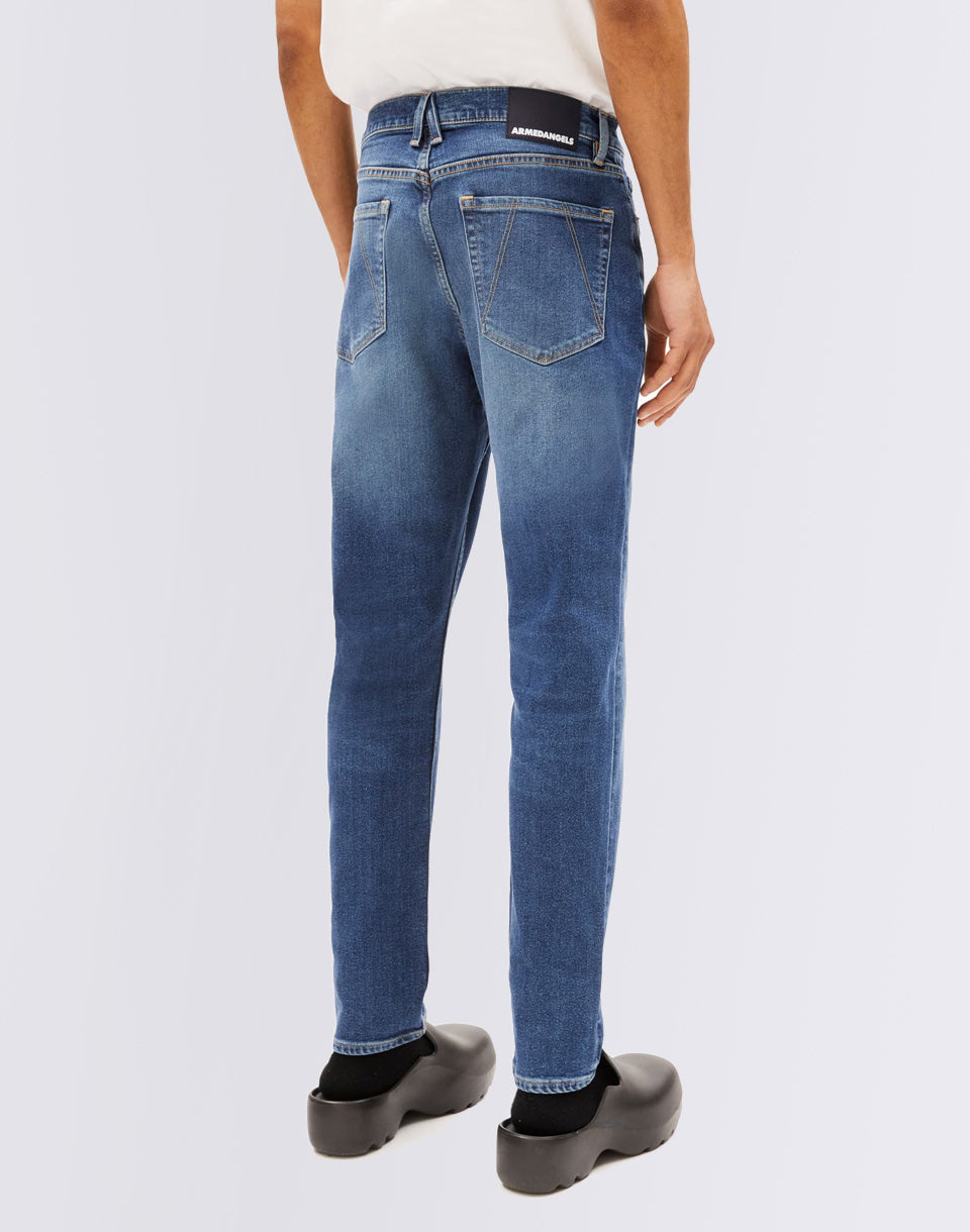 Armedangels Aarjo Tarpa - men's denim trousers, looser at the waist and tapering to the ankles, made from a blend of recycled cotton and lyocell.