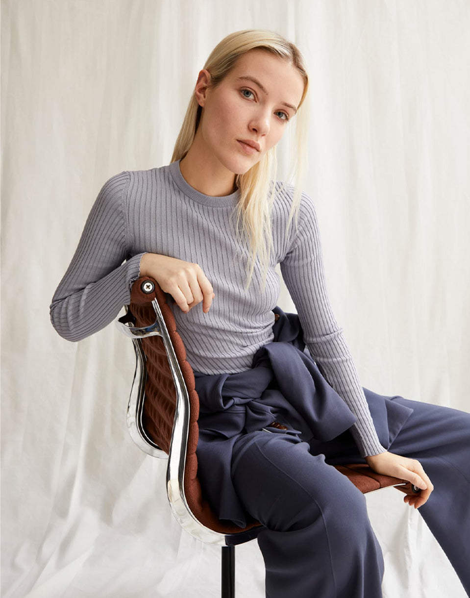Armedangels Alaania RN - women's long sleeve knit shirt made from organic cotton with GOTS certification.