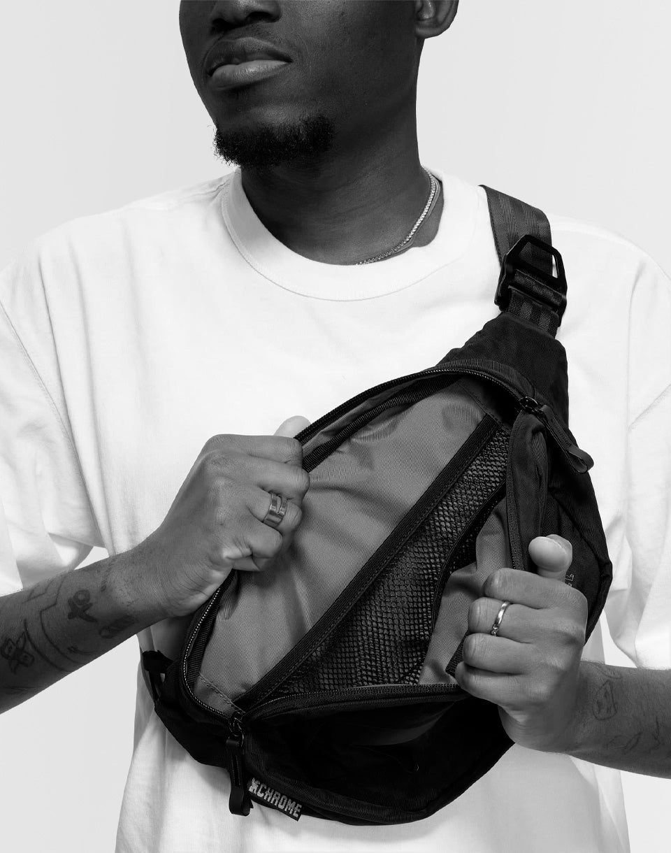Chrome Industries Sabin 6L Sling- a cross body bag made from recycled nylon that can seamlessly transition from the hustle and bustle of everyday life to a night out.