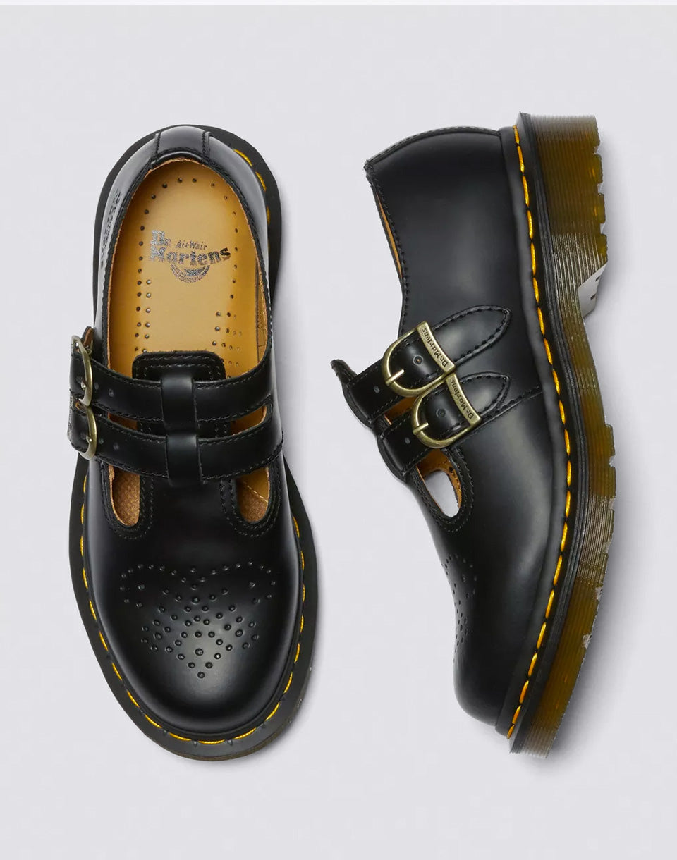 Dr. Martens 8065 Mary - Leather half boots in a classic silhouette with double straps and buckle and brogue details at the toe.
