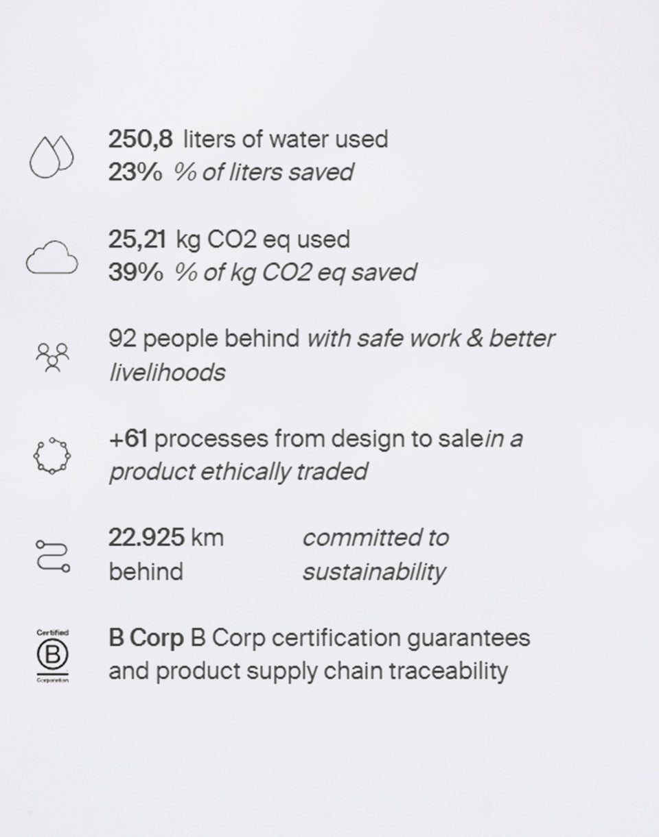 The brand is responsible for ensuring that workers throughout the supply chain have good working conditions that are controlled. They are therefore provided with a safe working environment and have adequate wages.