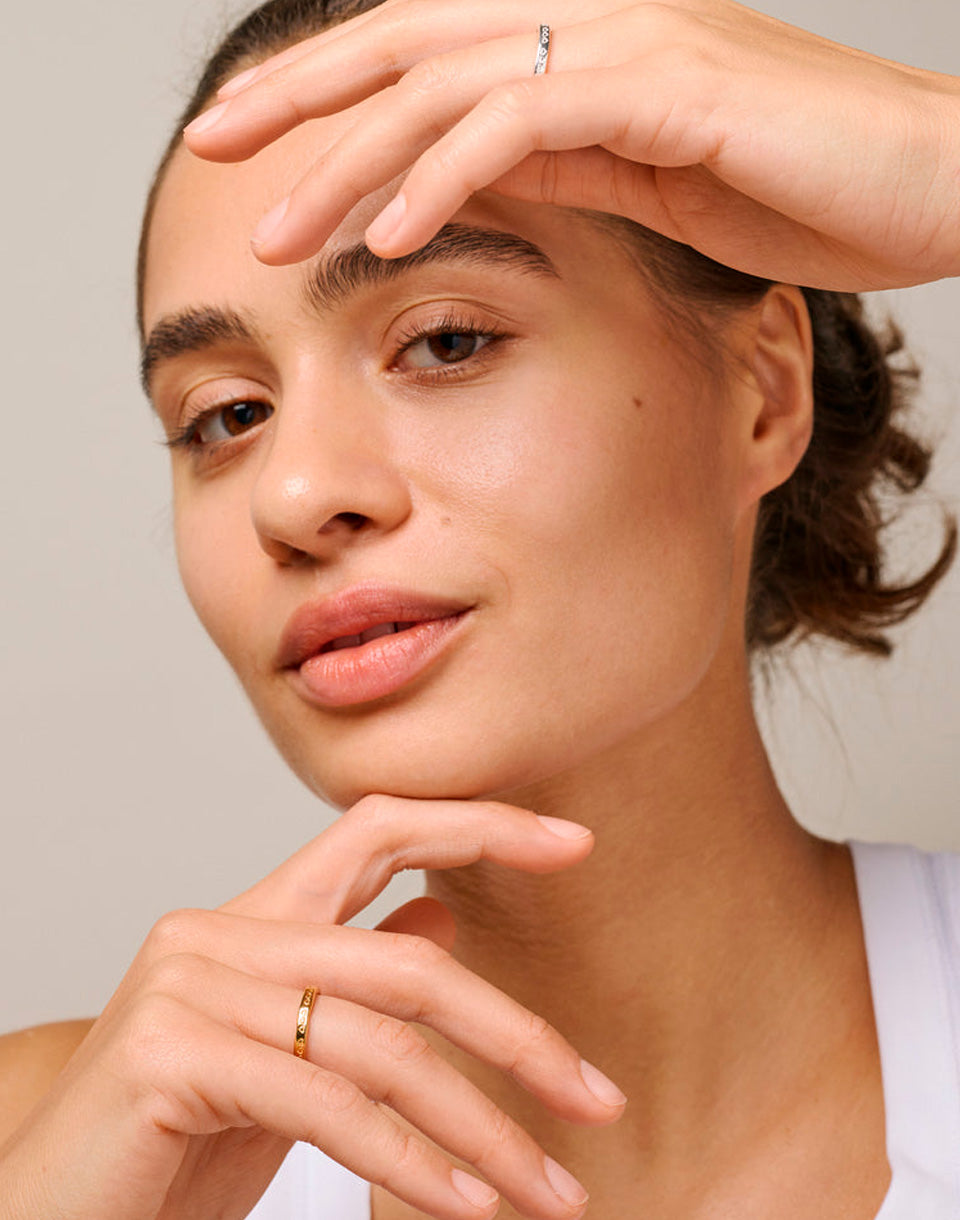 ENAMEL Copenhagen Ring, Heart - this delicate ring looks minimalistic at first glance, but a closer look reveals tiny engraved hearts all around.