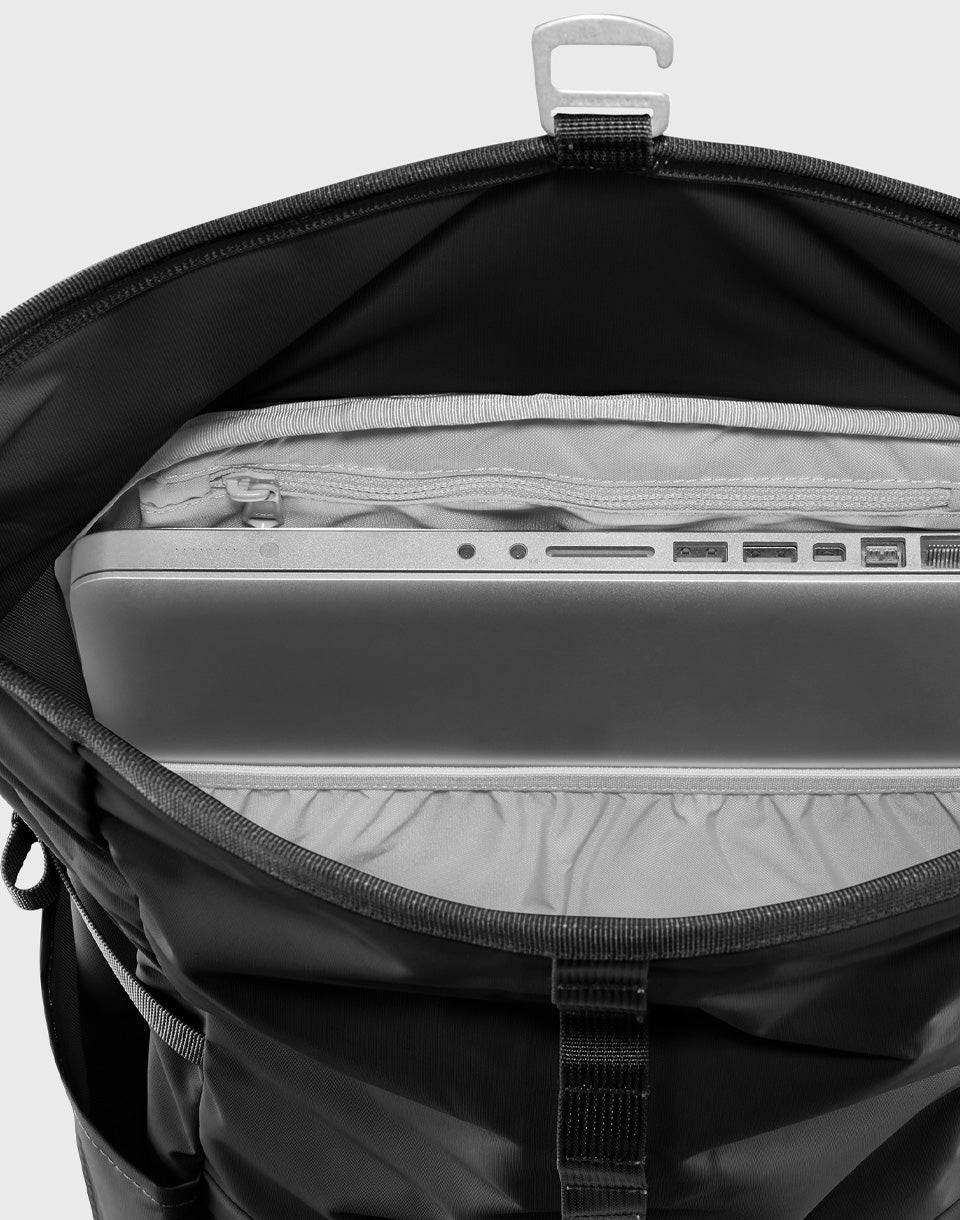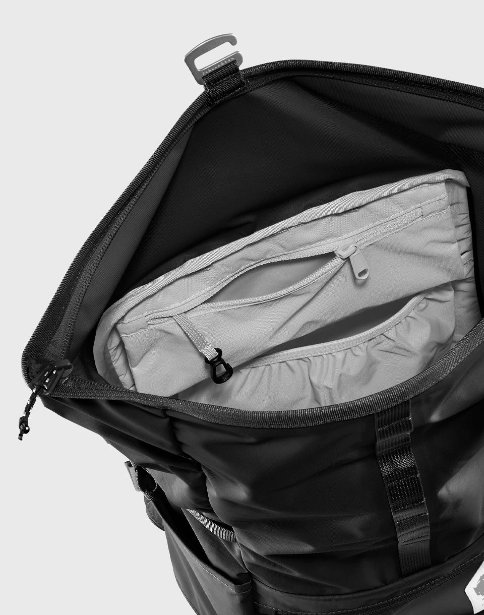 • All-weather protection - waterproof recycled nylon without PFAS, main pocket with roll-up closure and buckle