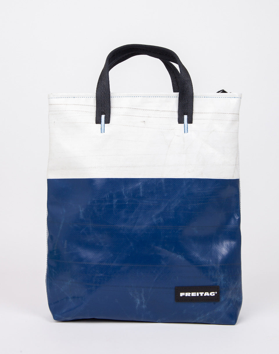 FREITAG F202 Leland - a unique bag made from used truck tarps, inspired by paper bags. The bag can be hold in your hand or you can carry it over your shoulder. It's up to you!