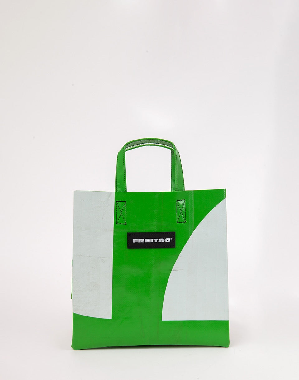 FREITAG F250 Sonny - the original shopping bag made from recycled truck sails, which takes the shape of a classic paper bag, folds comfortably into a backpack and can carry even a large purchase.