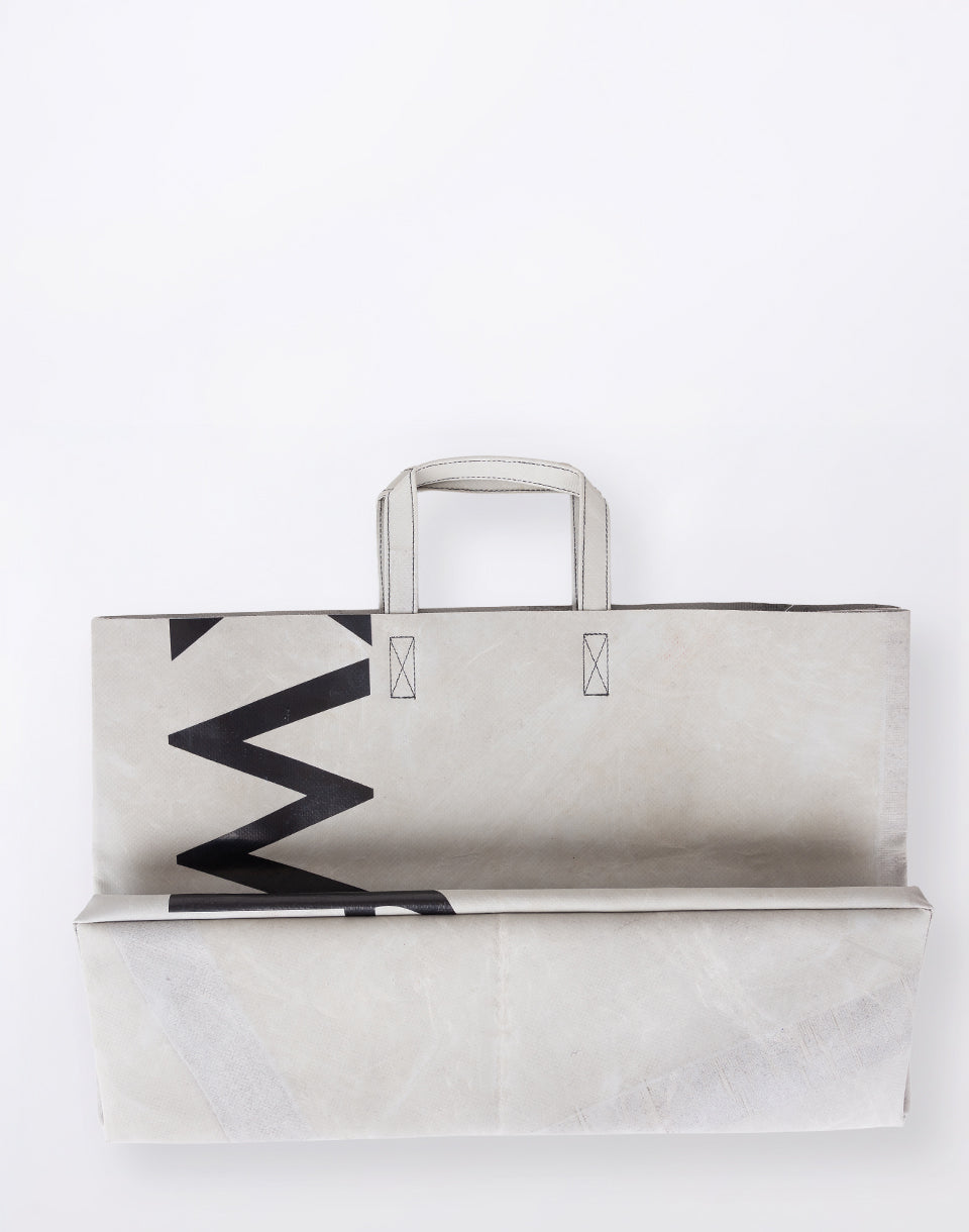 FREITAG F260 Miami Wide - a unique shopping bag made of recycled truck sails, which is based on the look of classic paper bags, but its width makes it unmistakable.