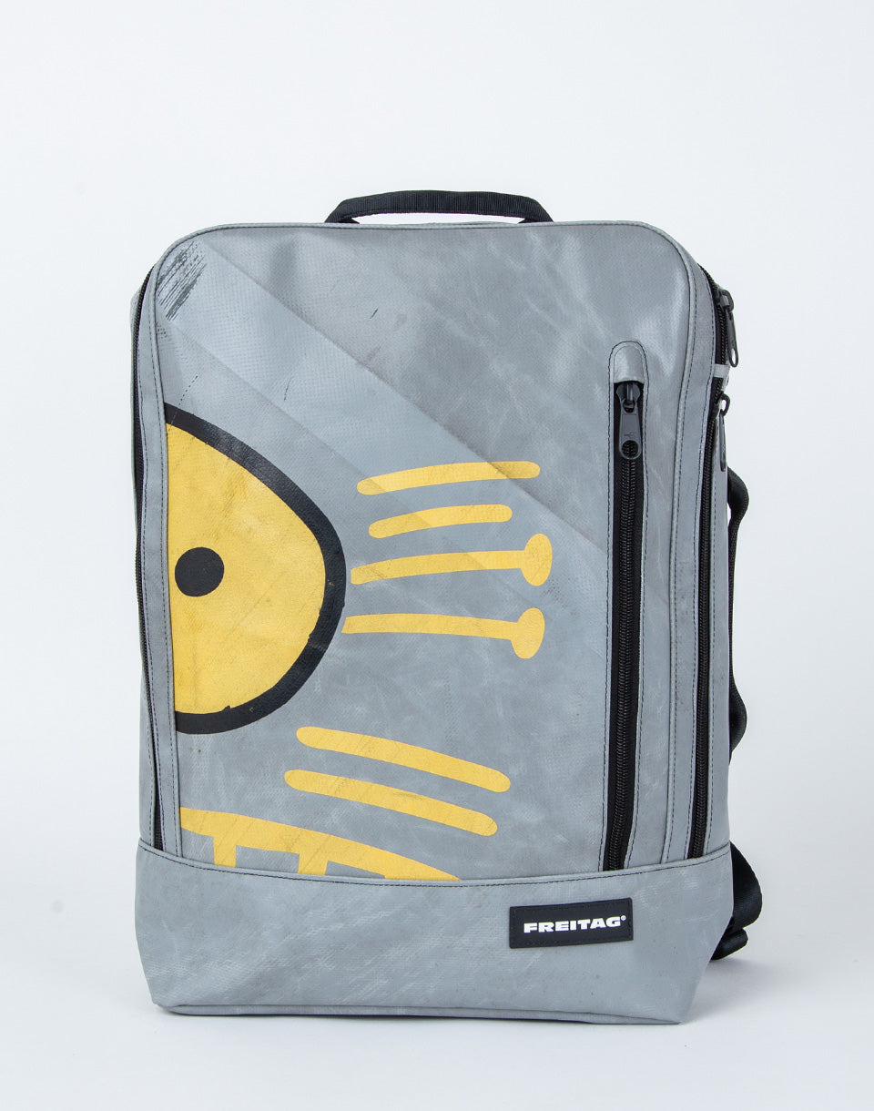 FREITAG F306 Hazzard - hand-cut and sewn Swiss backpack made from used truck tarps and seat belts.
