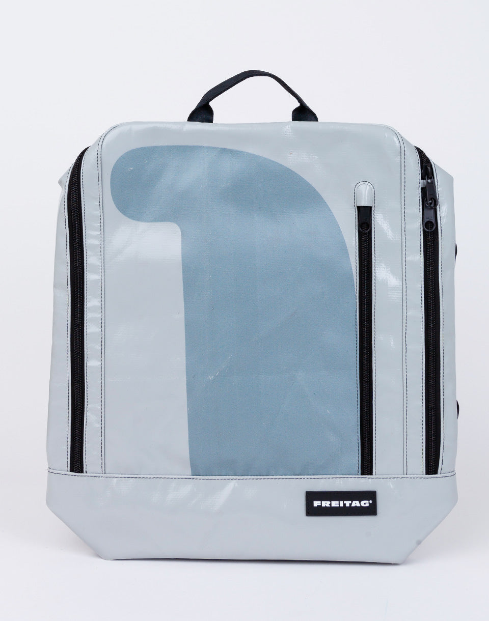 FREITAG F306 Hazzard - hand-cut and sewn Swiss backpack made from used truck tarps and seat belts.