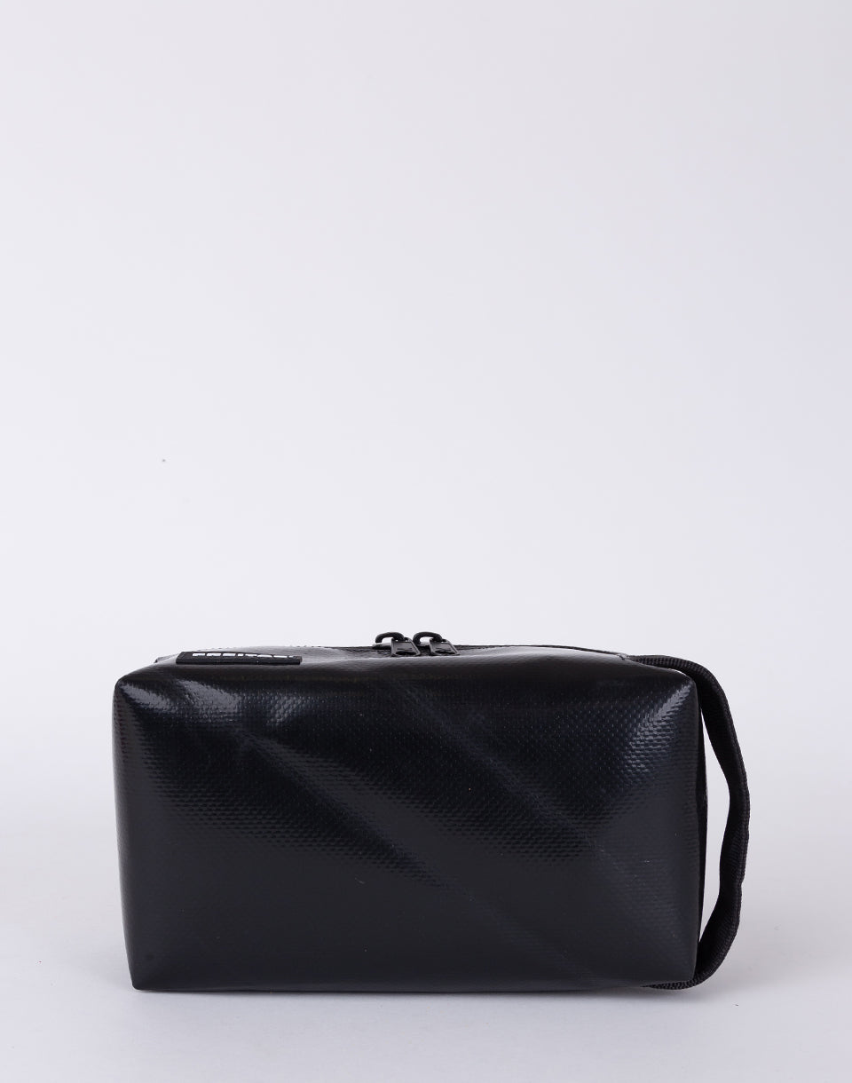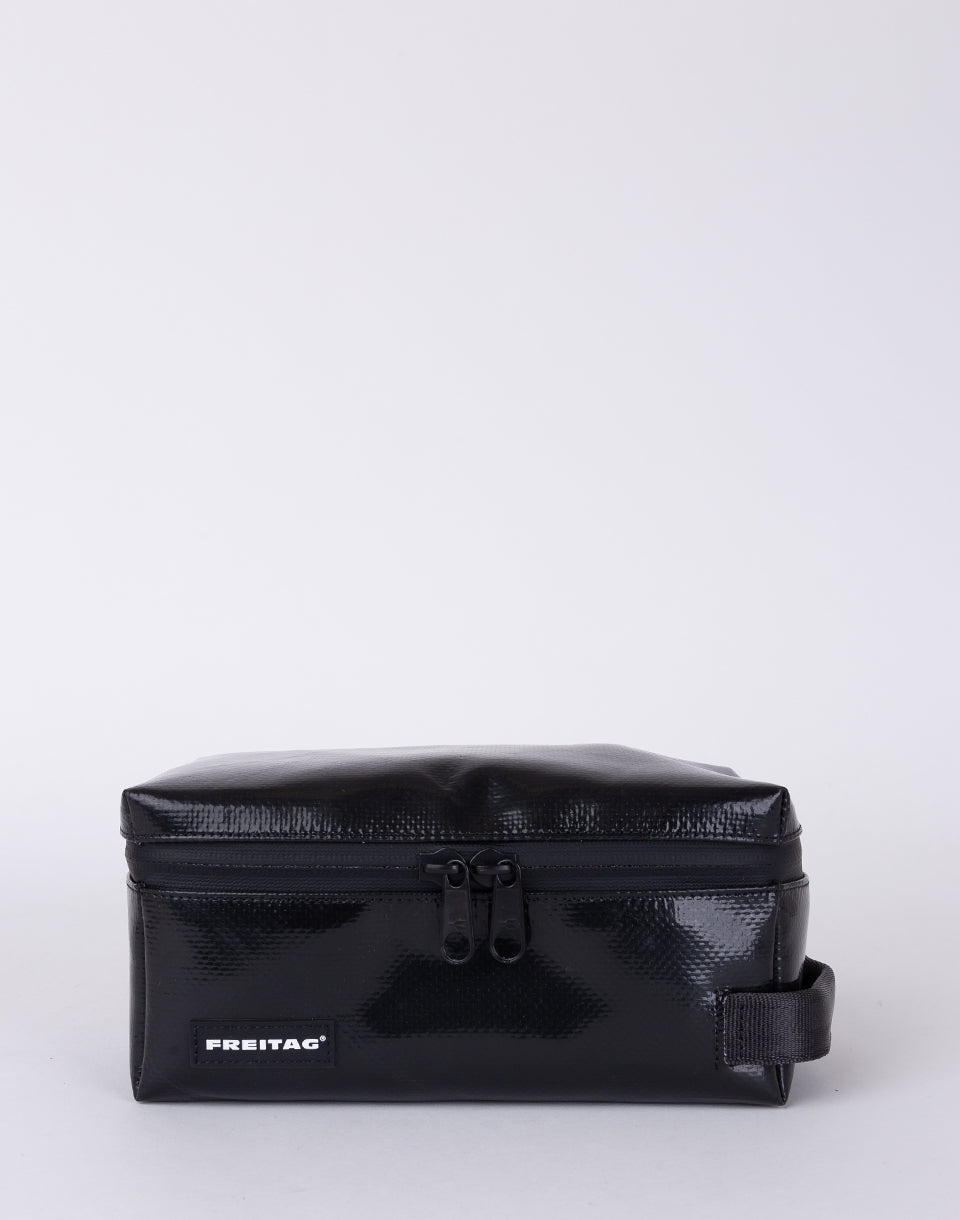 FREITAG F36 Wayne - medium-sized cosmetic bag made from used truck tarps and upcycled seat belts. Thanks to practical compartments, it will be an ideal travel partner.