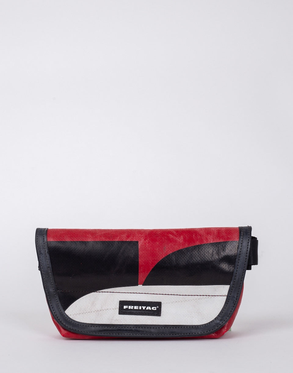 The F40 Jamie is a compact kidney that offers more than meets the eye. The minimalist design hides a practically structured interior, a comfortable shoulder strap and material that will last. Made from upcycled truck tarpaulin - so not only does each piece look different, but each has had its own journey. Just strap it on and go.