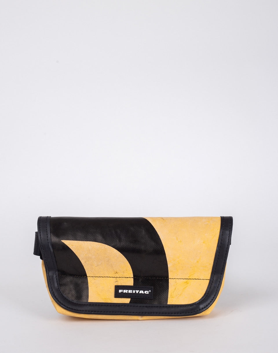 The F40 Jamie is a compact kidney that offers more than meets the eye. The minimalist design hides a practically structured interior, a comfortable shoulder strap and material that will last. Made from upcycled truck tarpaulin - so not only does each piece look different, but each has had its own journey. Just strap it on and go.