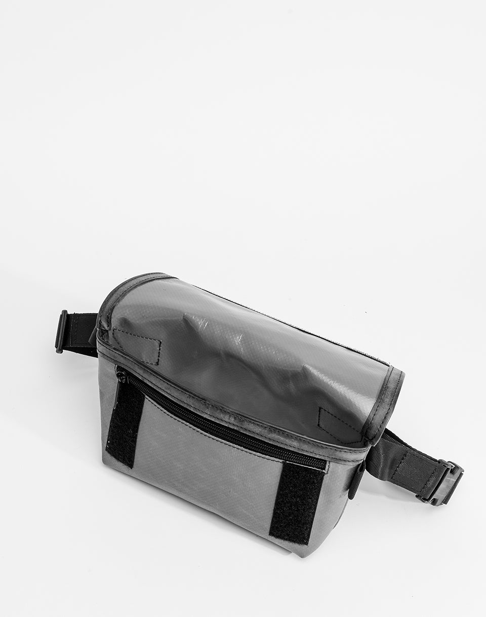 The F40 Jamie is a compact kidney that offers more than meets the eye. The minimalist design hides a practically structured interior, a comfortable shoulder strap and material that will last. Made from upcycled truck tarpaulin - so not only does each piece look different, but each has had its own journey. Just strap it on and go.