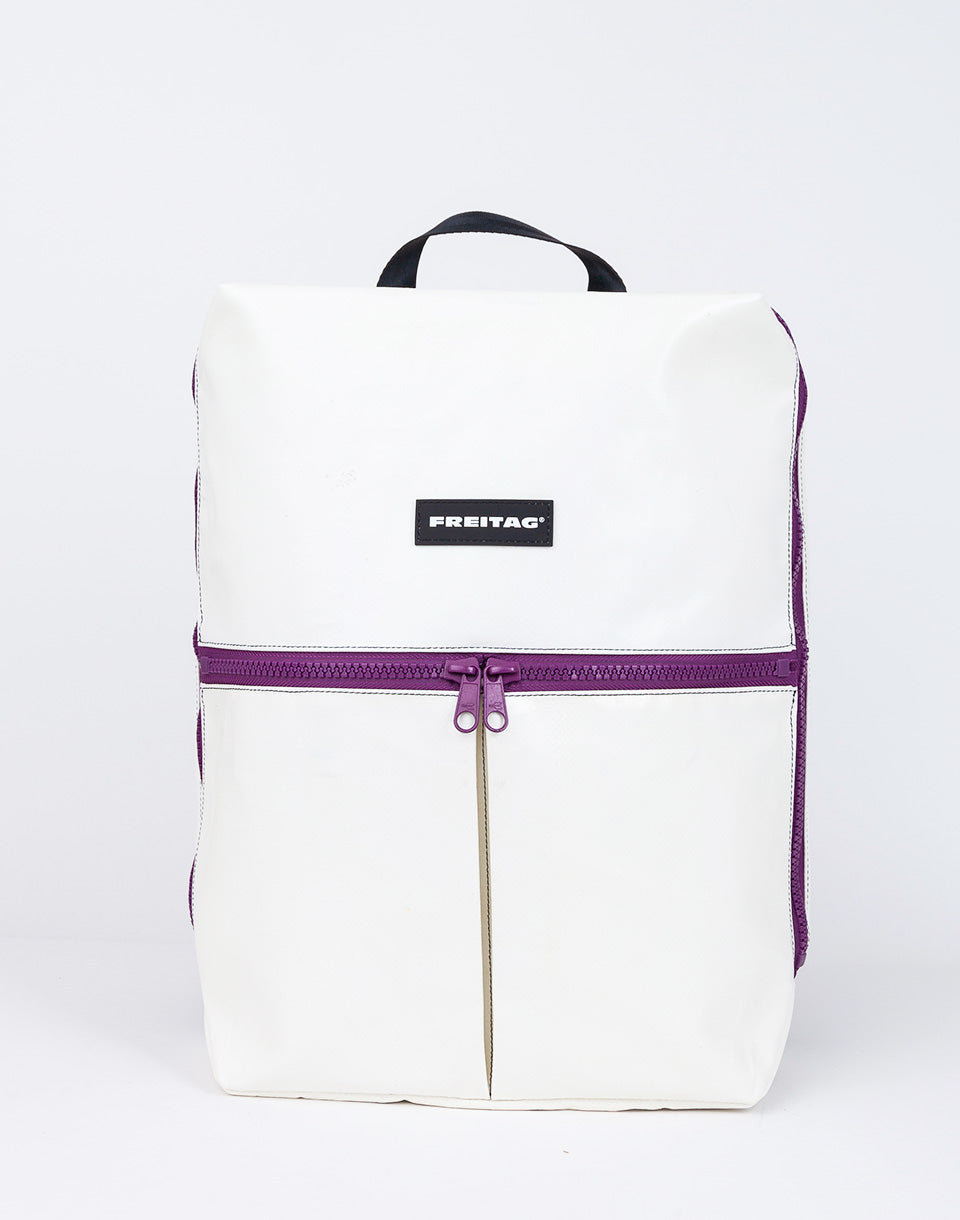 FREITAG F49 Fringe - a unique Swiss handmade backpack made from used truck tarps and recycled seat belts.