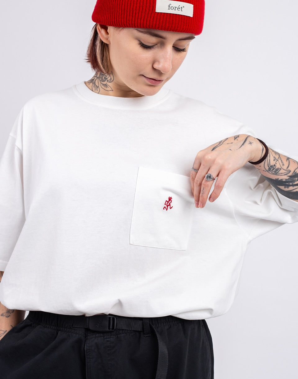 Gramicci One Point Tee - a durable men's organic cotton shirt that features a small chest pocket with embroidery.