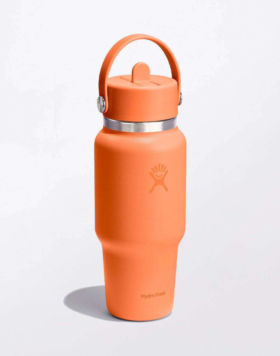 Hydro Flask Wide Mouth Travel Bottle with Flex Straw Cap 24 oz (710 ml) - a sustainable, premium stainless steel thermos that is designed for car travel and fits most cup holders.