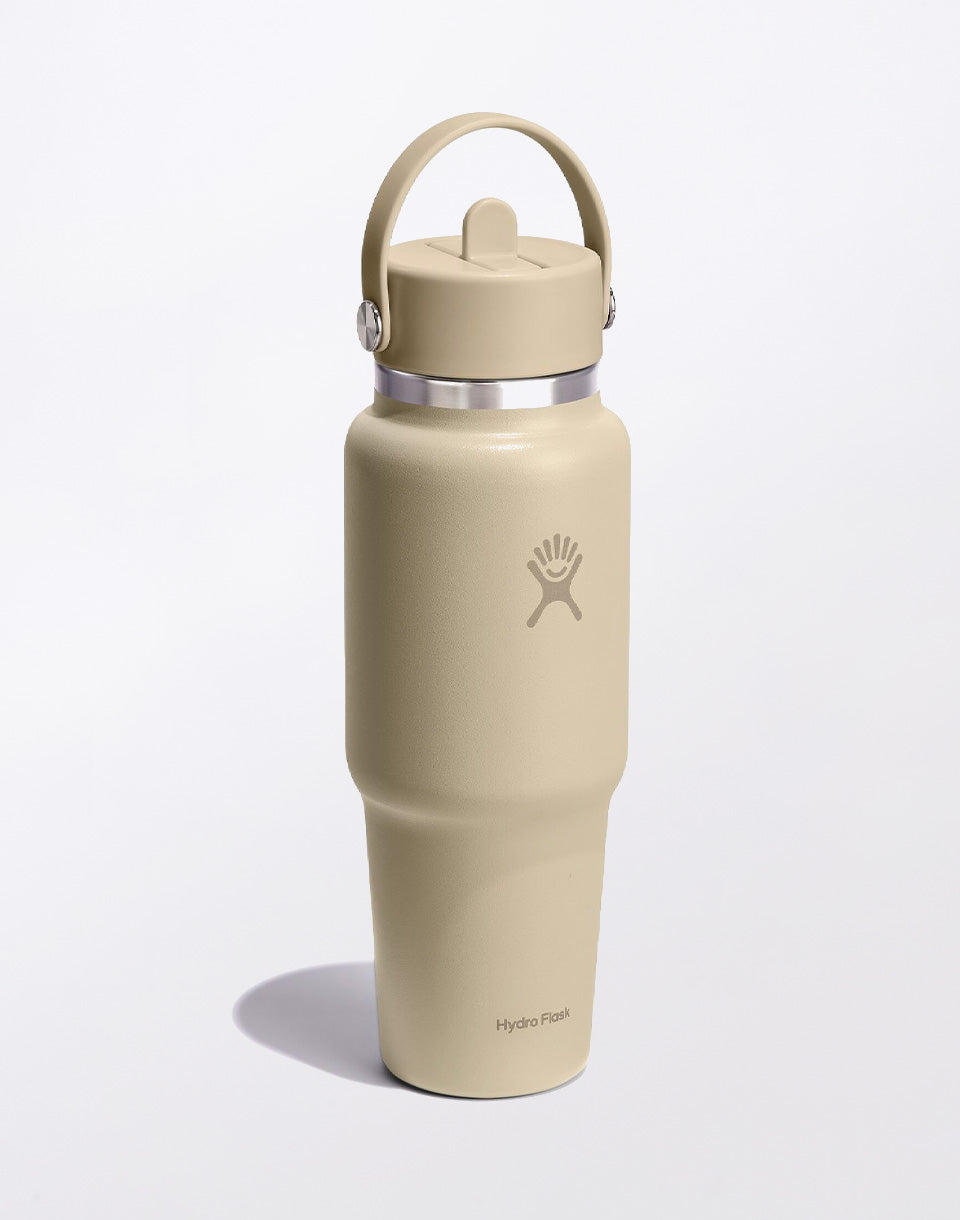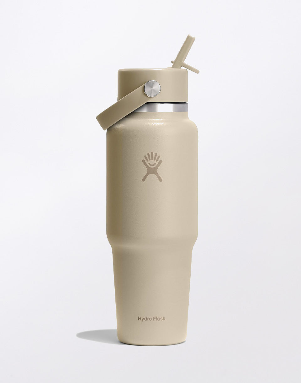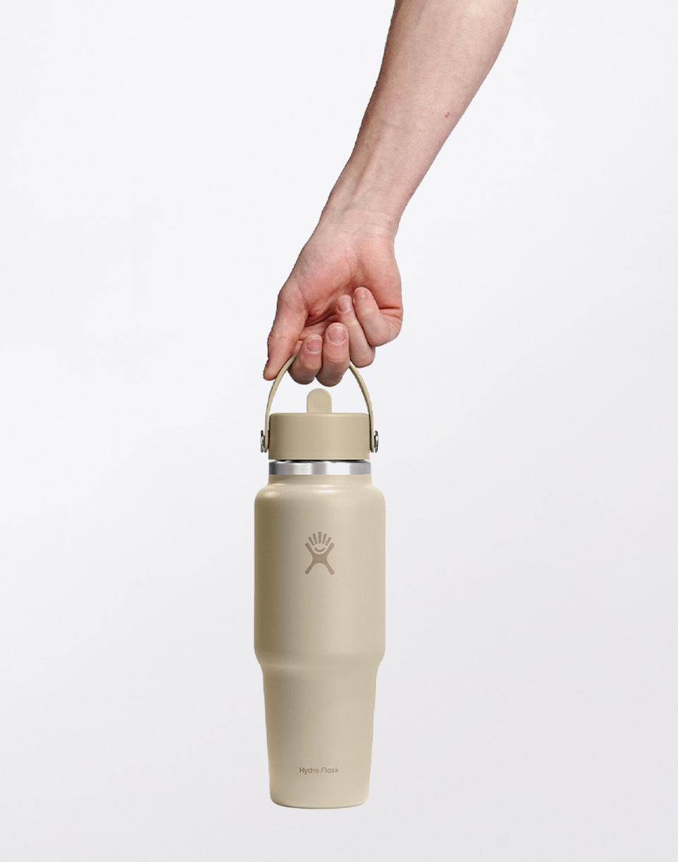 Hydro Flask Wide Mouth Travel Bottle with Flex Straw Cap 32 oz (946 ml) - a sustainable, premium stainless steel thermos that is designed for car travel and fits most cup holders.