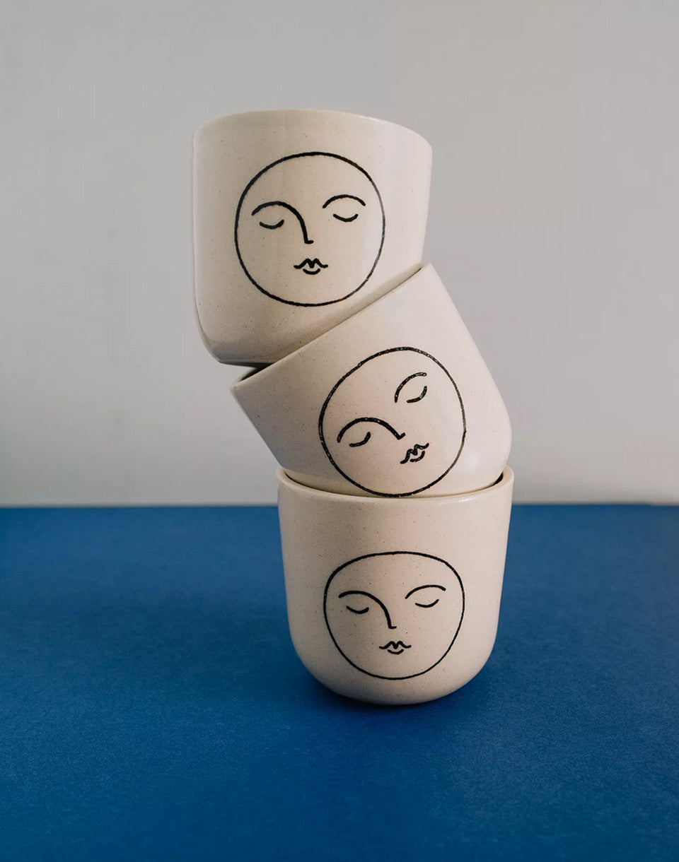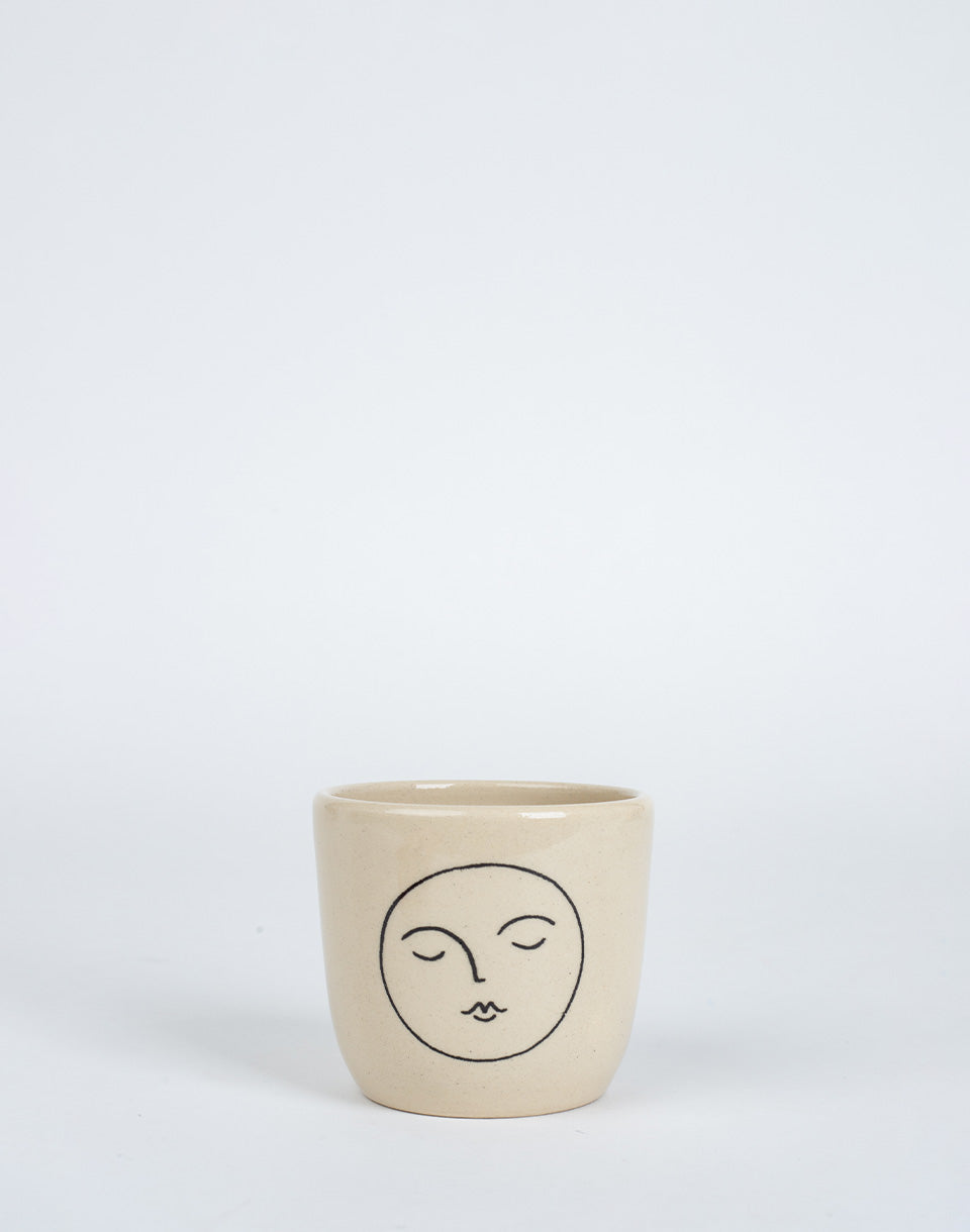 In August Company Small Cup Outline Moon Black Drawing - a small mug with a characteristic moon motif, handmade in a small workshop in Prague.