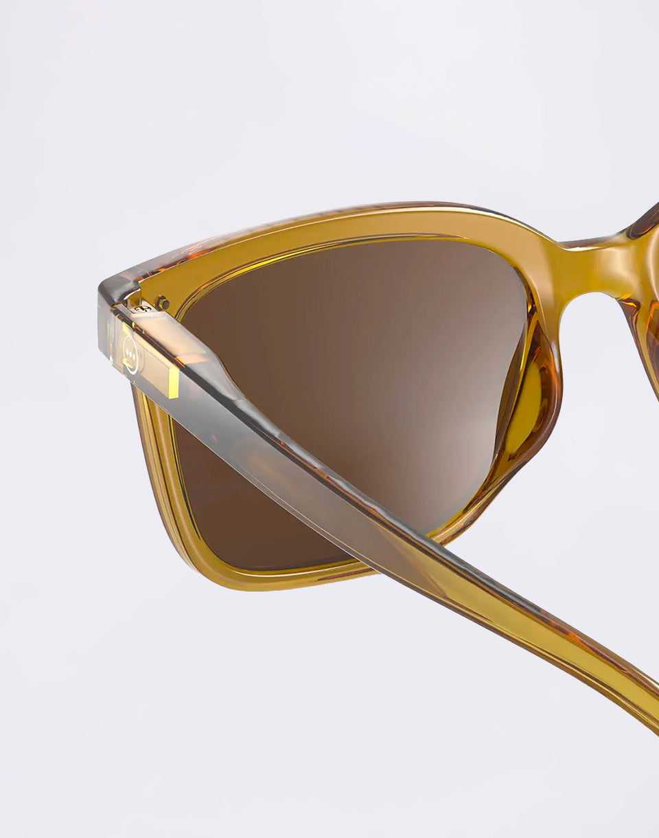 Izipizi glasses are made of polycarbonate lenses, plastic and rubber. The brand uses recycled polyester, recycled cardboard and recycled paper for product packaging.