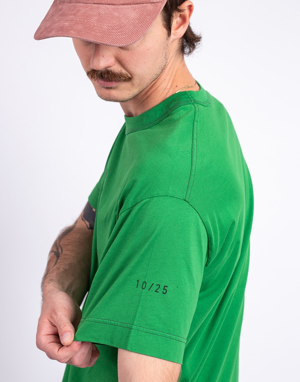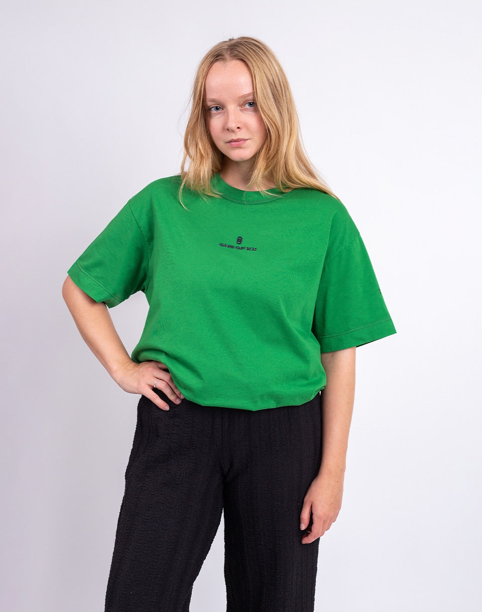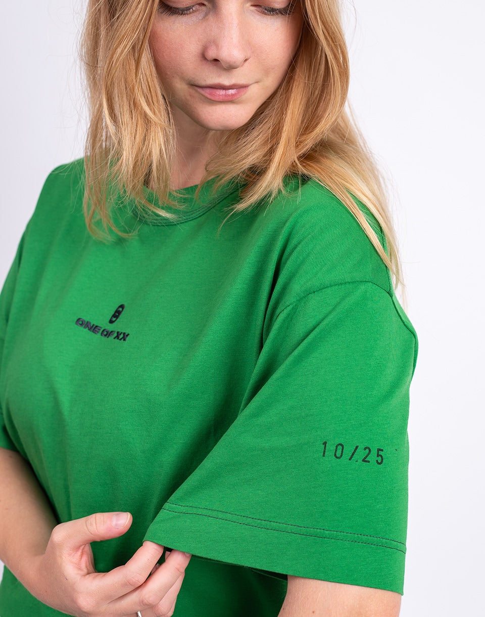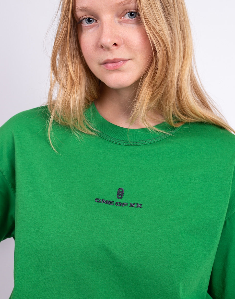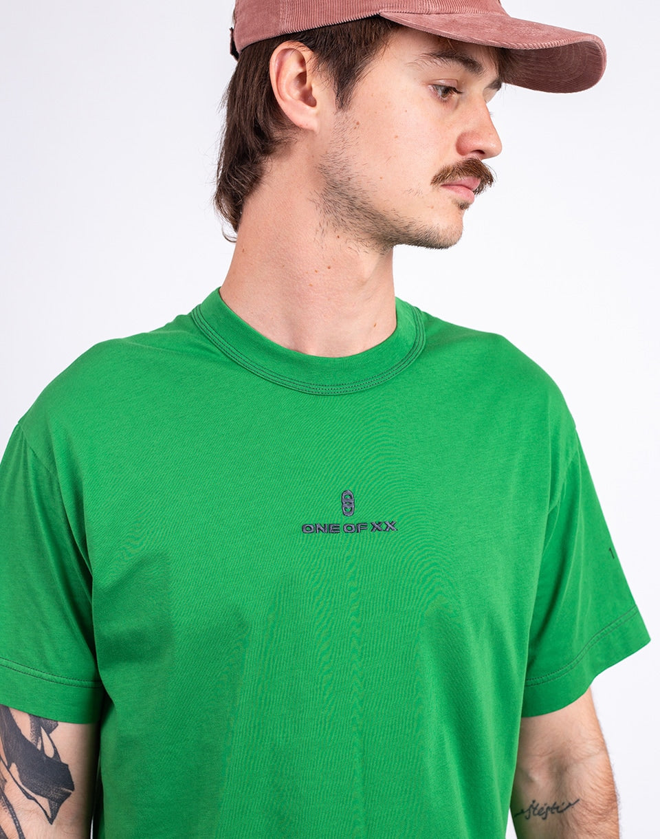 ONE OF XX Sheltersuit Logo T-Shirt - loose fit t-shirt with embroidered logo on the chest , which is one of 25 pieces made from deadstock of French luxury brands.