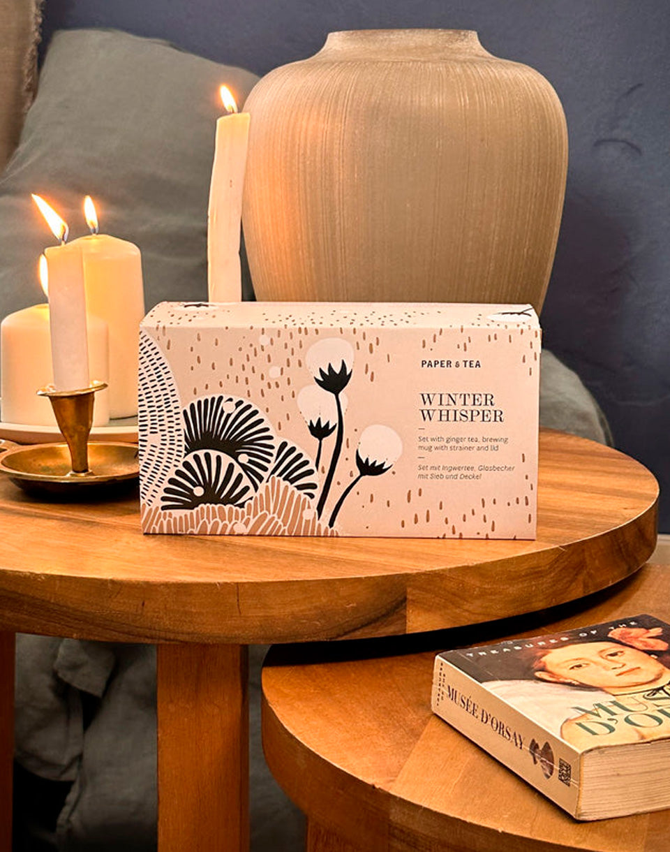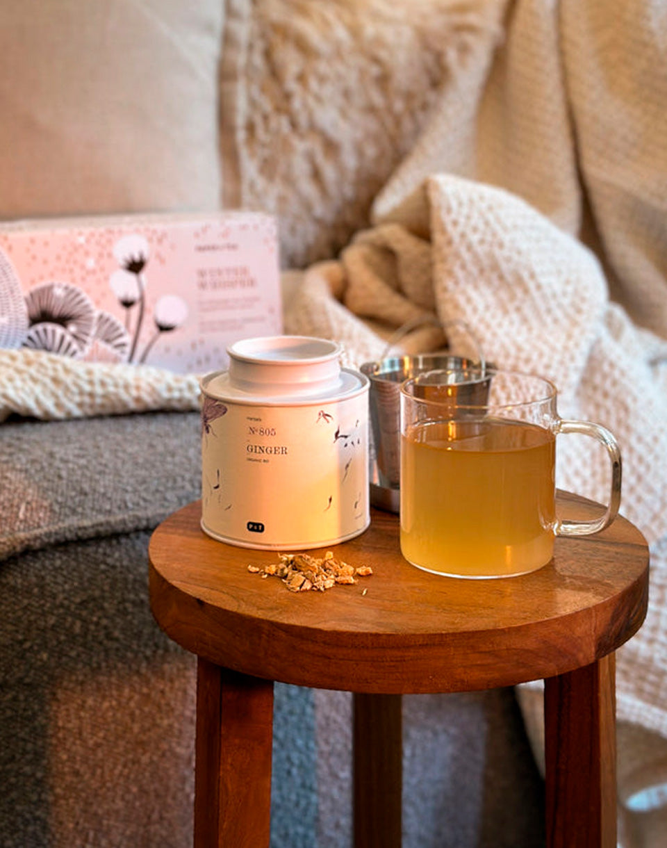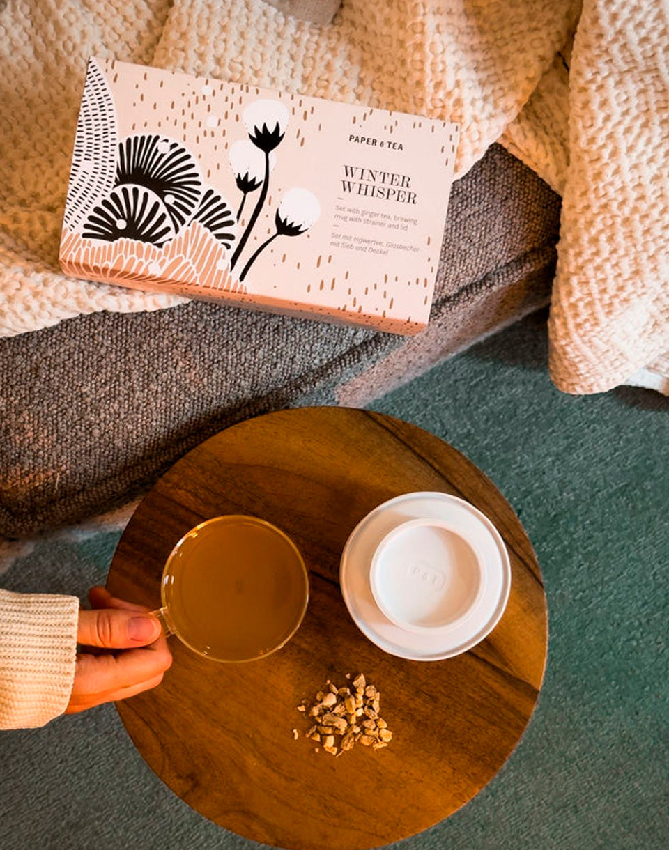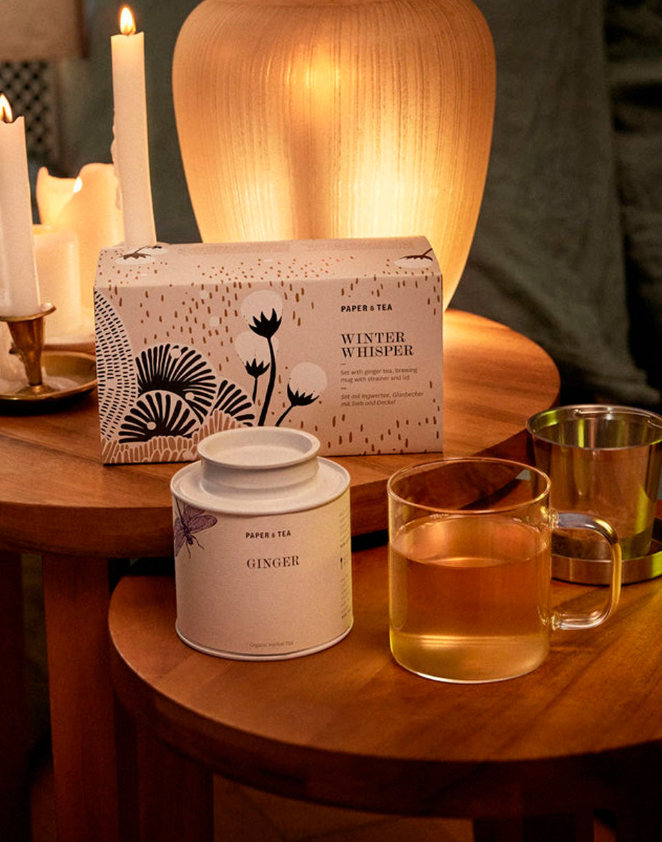 P&T Winter Whisper Set - a ginger tea set with a glass mug and strainer to help you enjoy the winter moments to the full.