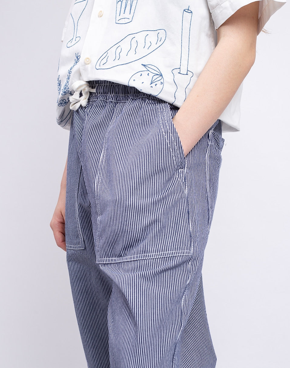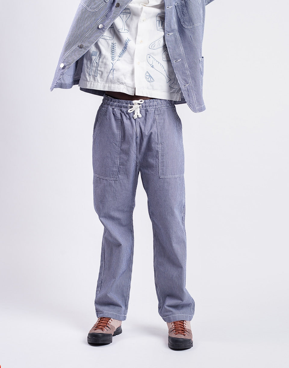 Founded in 2020, Service Works is a brand inspired by its founder's culinary experience. It was originally created out of his love for comfort and elastic waistbands, which were a common part of his life in the kitchen. The classic range of trousers combines elements of traditional chef wear with carefully selected, heavier organic materials to ensure comfort in everyday wear.
