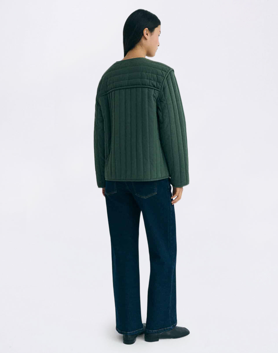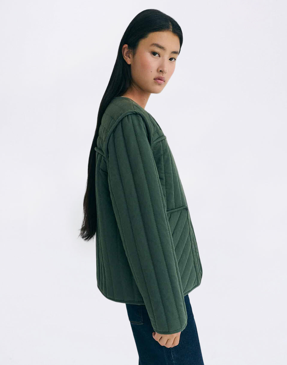 Thinking MU Dark Eucaliptus Ayo Jacket - organic cotton quilted jacket with clean design and casual character