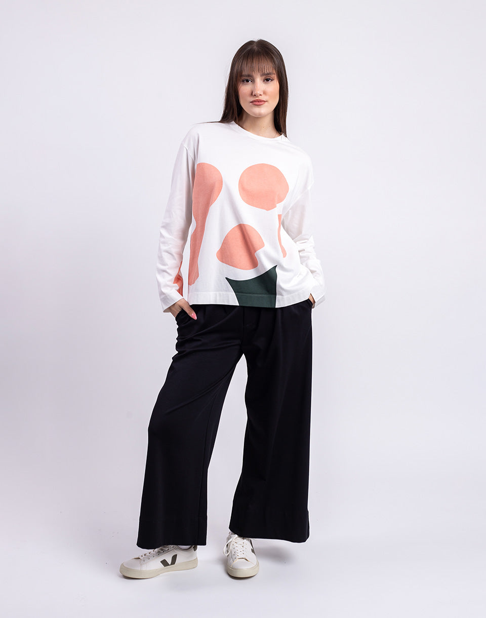 Thinking MU Flower Contrast Emily Tee - Long sleeved organic cotton tee with a subtle floral motif that will brighten up any outfit.