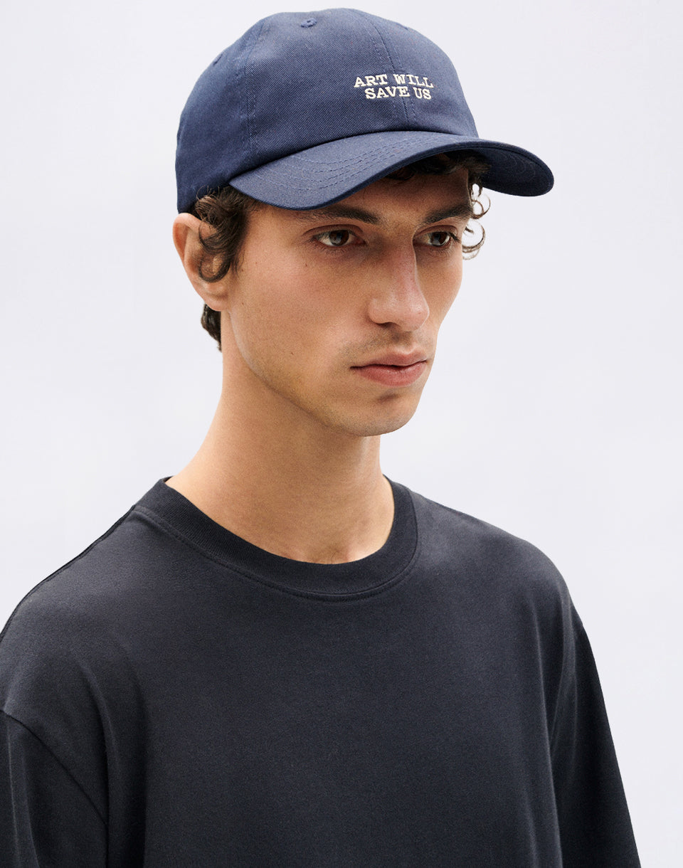 Thinking MU Thinking Navy Art Will Save Us Chris Cap - classic bio-cotton cap with embroidery on the front.