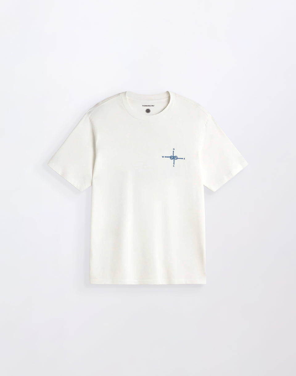Thinking Mu Pescatore Zach Tee - organic cotton tee with a print that references the Mediterranean mood and simplicity of summer days.