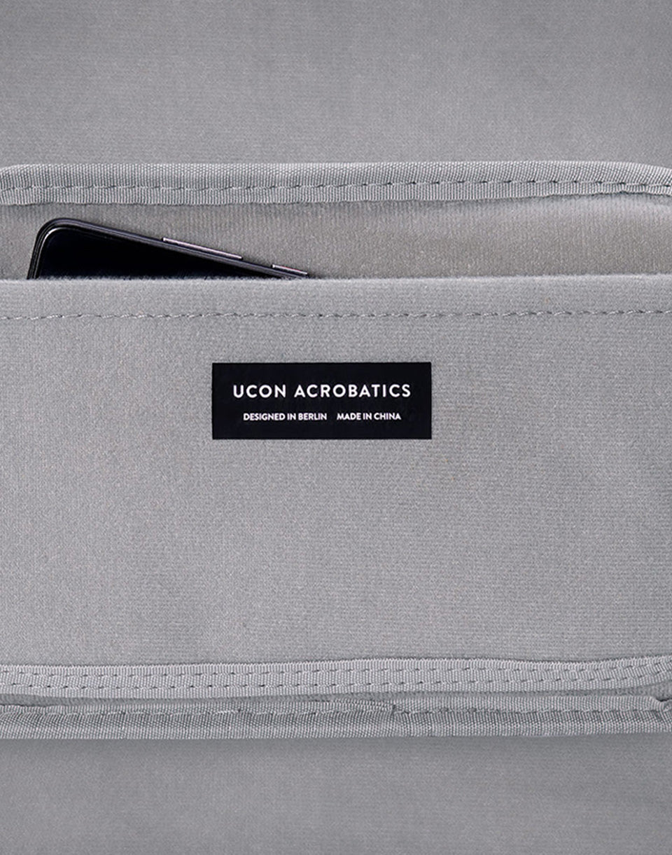 The Ucon Acrobatics brand uses materials such as polyester, polyurethane, recycled cotton and upcycled neoprene (from the autumn / winter 2020 season).