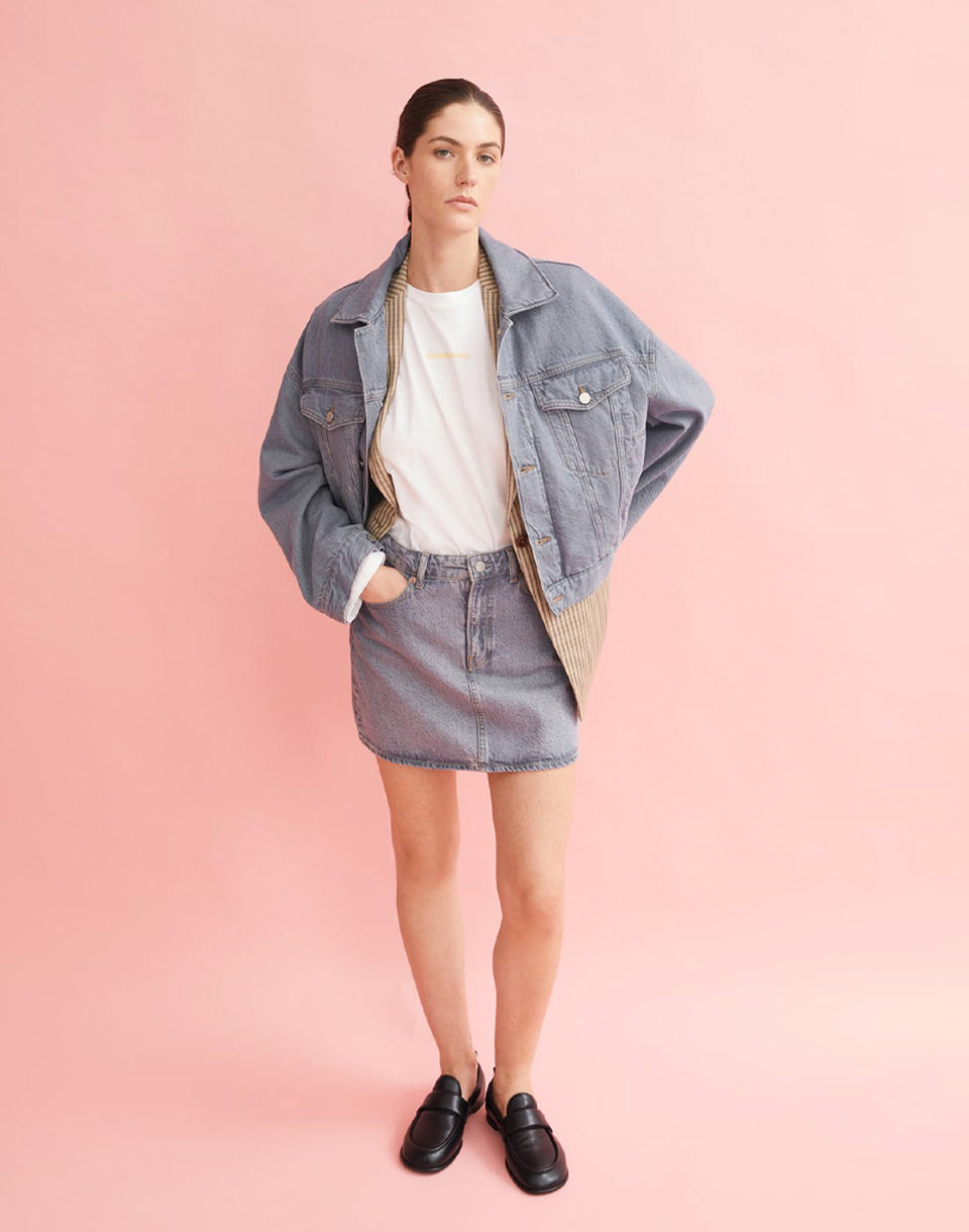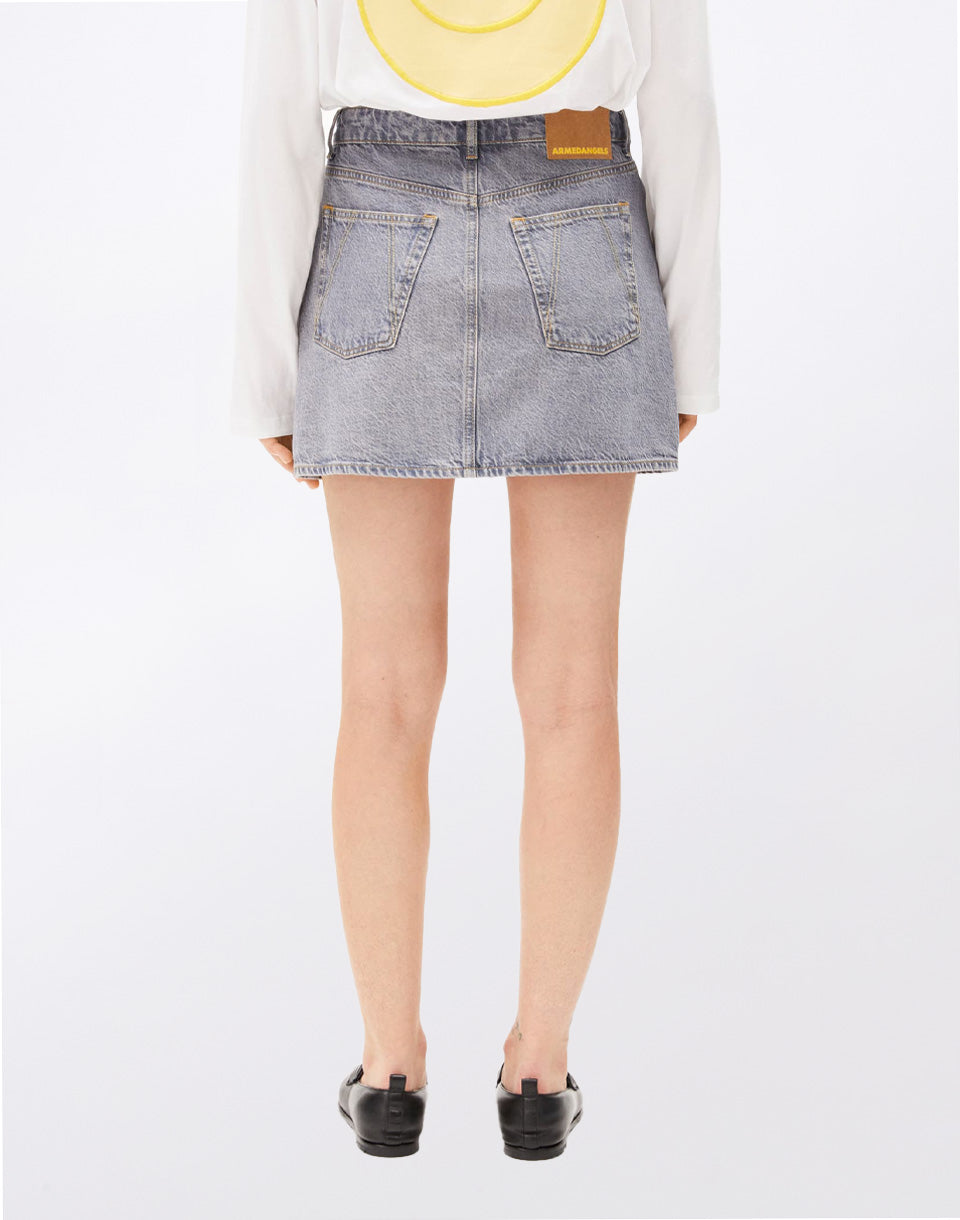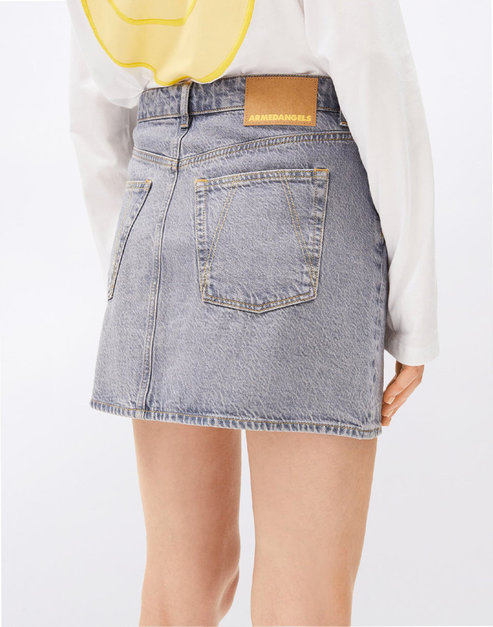 Armedangels Aacumeri - jupe courte en jean pour femme fabriquée à partir d'un mélange de coton biologique et recyclé.