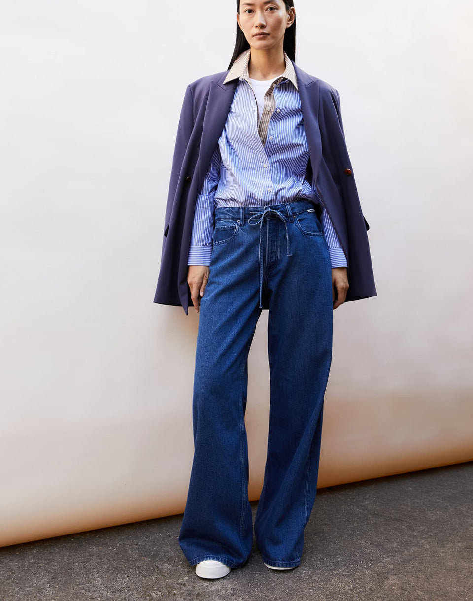 Armedangels Astraeaas - jean pour femme avec une taille moyennement haute, des jambes larges et une fermeture boutonnée classique.