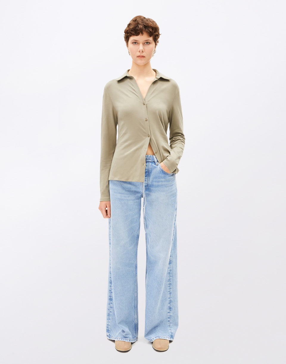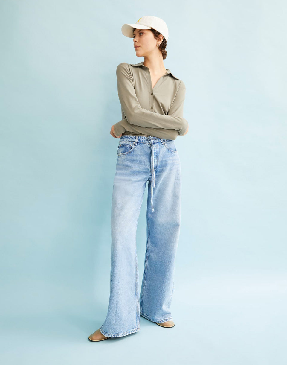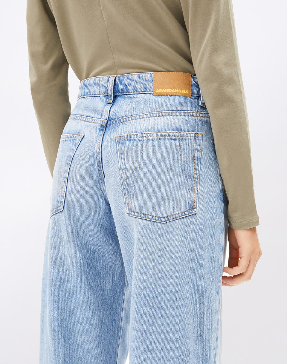 Armedangels Astraeaas - jean pour femme avec une taille moyennement haute, des jambes larges et une fermeture boutonnée classique.