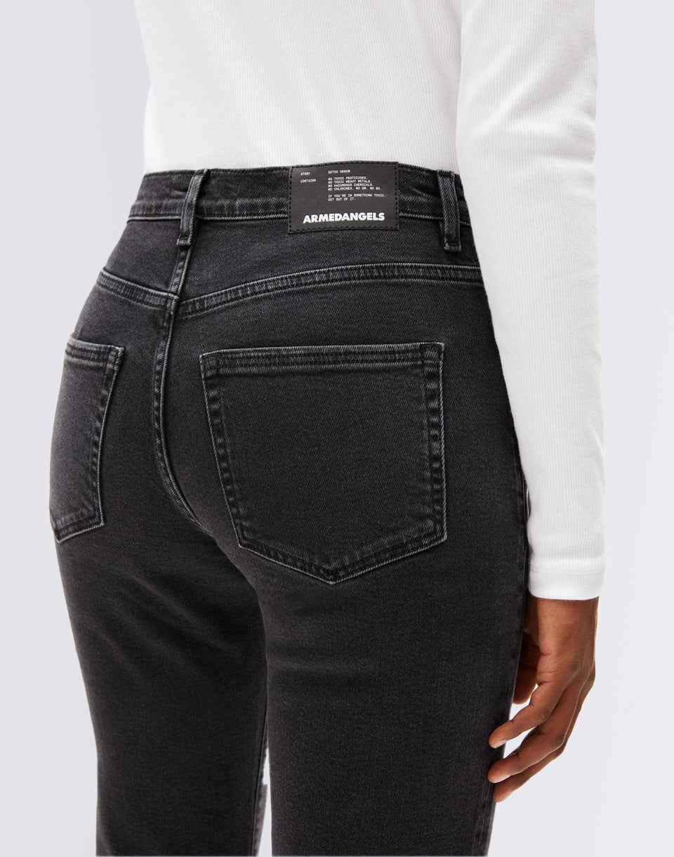 Armedangels Carenaa - pantalon denim féminin fabriqué à partir d'un mélange de coton recyclé et de lyocell.
