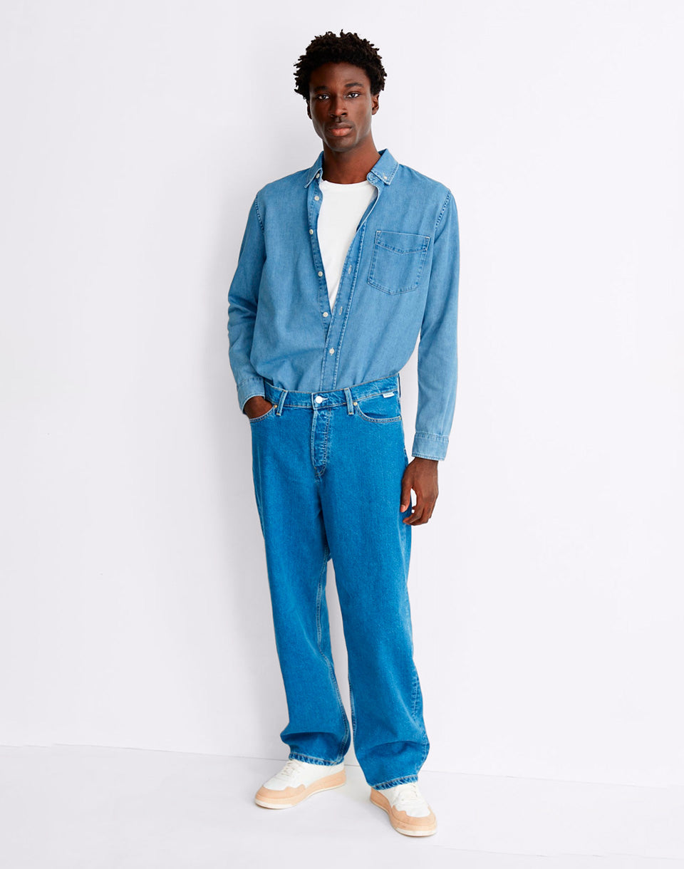 Armedangels Jaameo - Men's baggy denim trousers with loose fitting wide legs that are made from 100% recycled cotton.