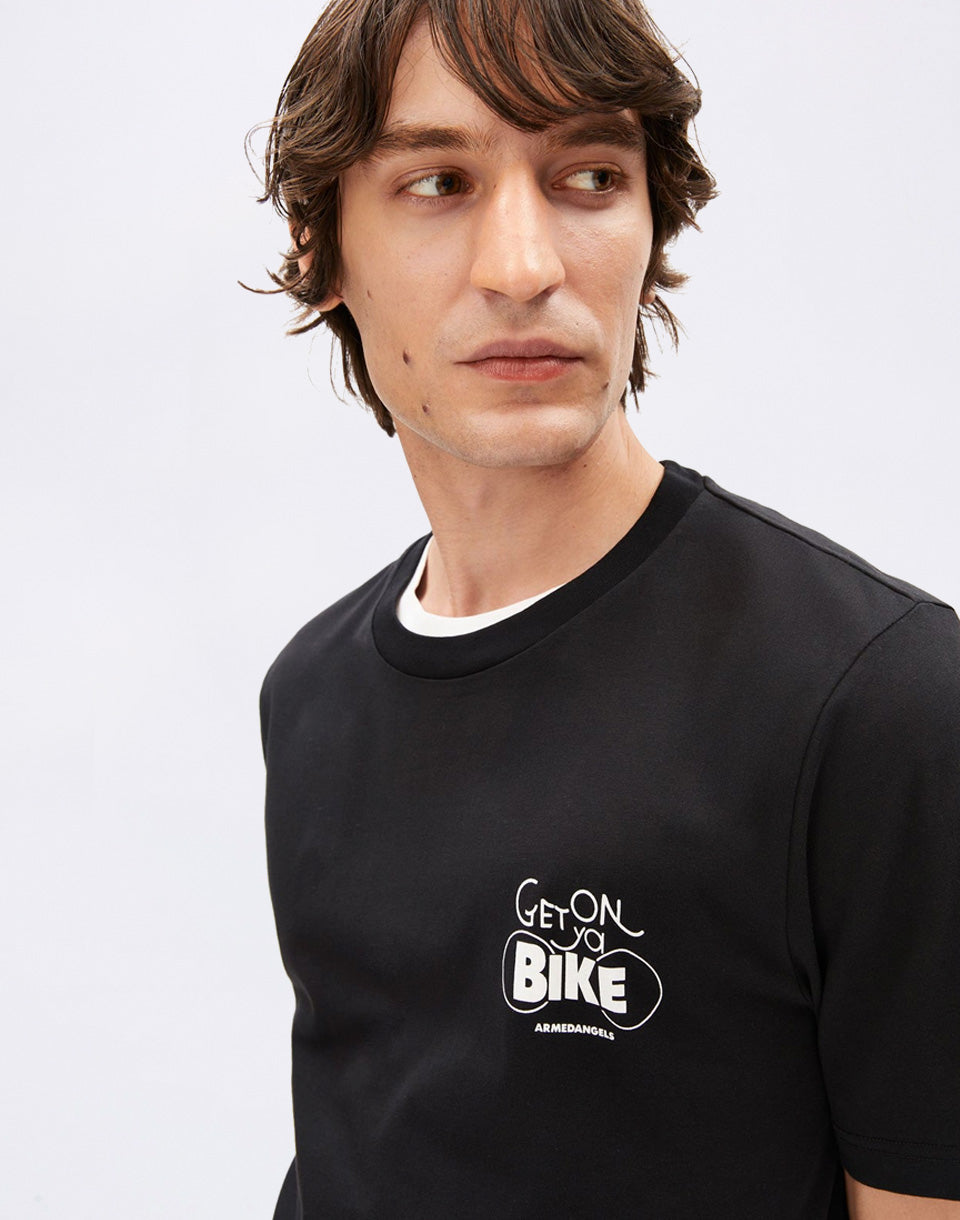Armedangels Jaames Bike - A fairly made men's organic cotton T-shirt from a popular German brand with a printed design.