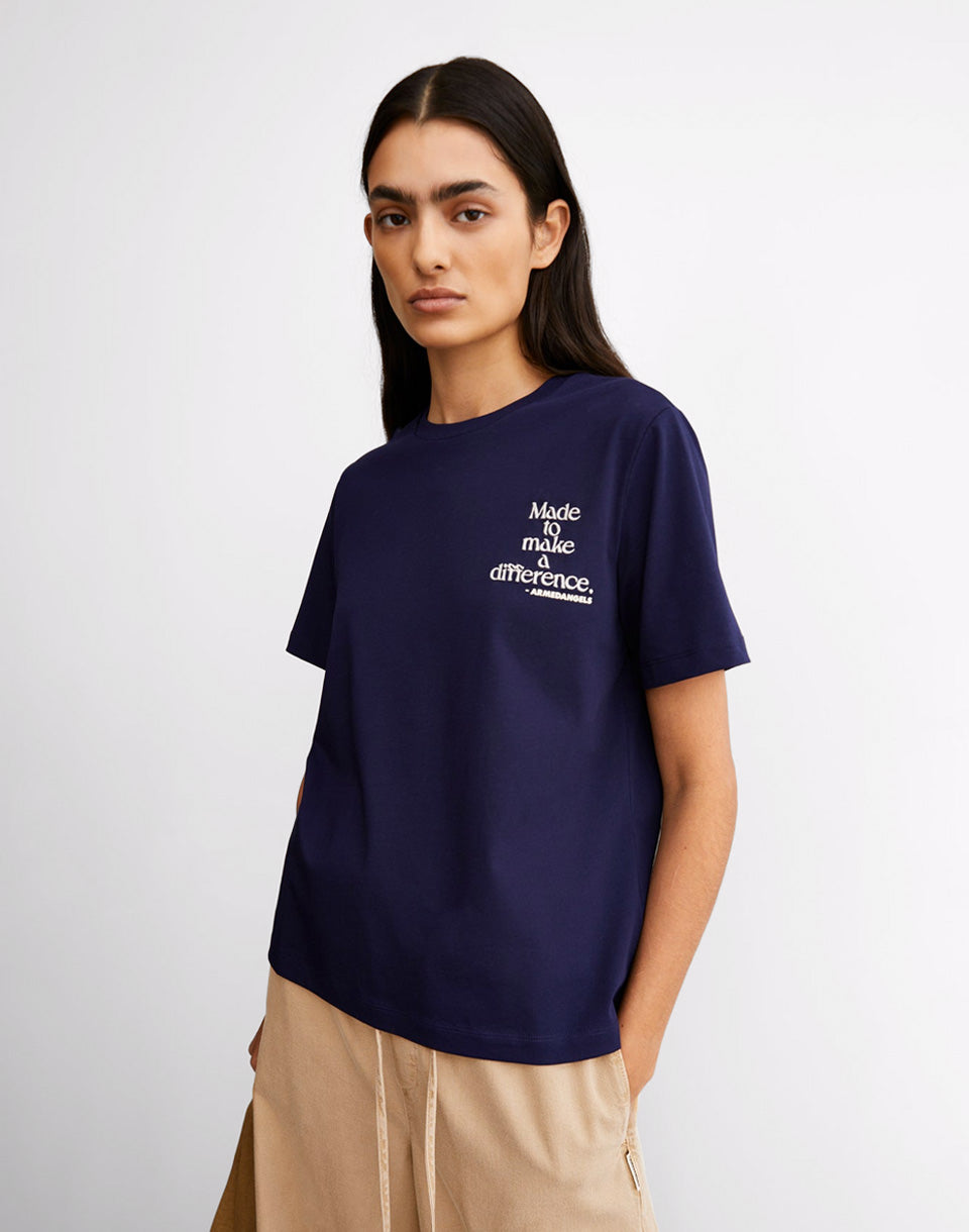 Armedangels Lualaa Diference - Women's comfortable GOTS certified organic cotton t-shirt with small embroidery on the chest.