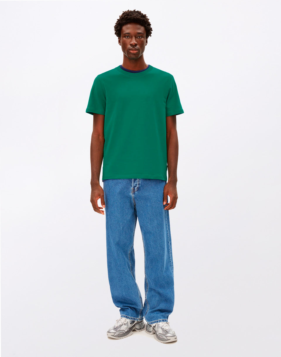 Armedangels Maarkos - a monochrome men's shirt with a looser fit that is fairly made from a blend of recycled and organic cotton.
