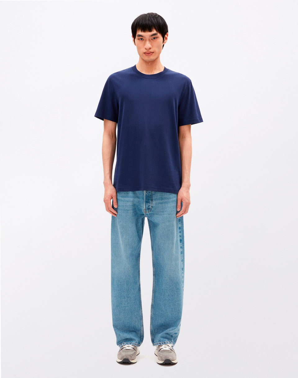 Armedangels Maarkos - a monochrome men's shirt with a looser fit that is fairly made from a blend of recycled and organic cotton.