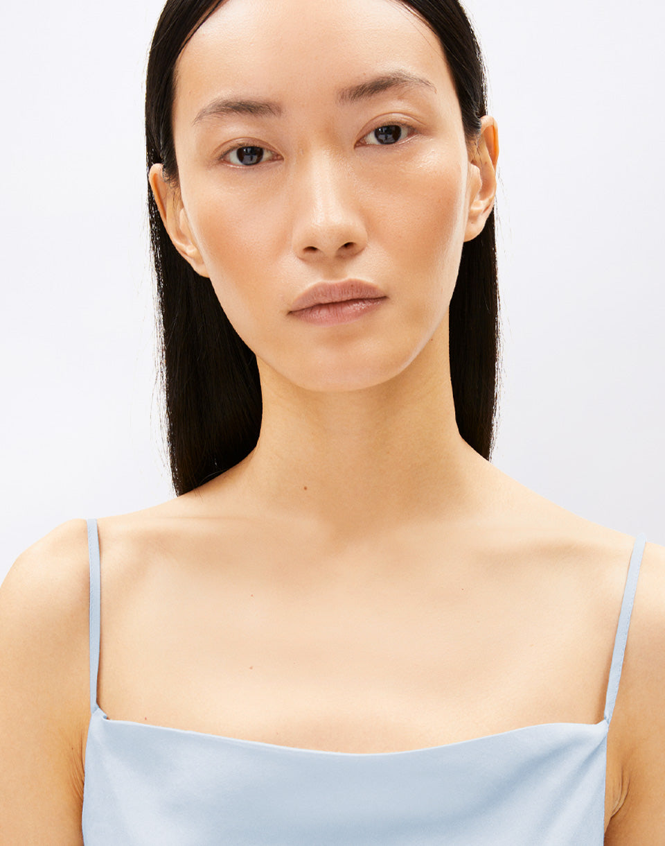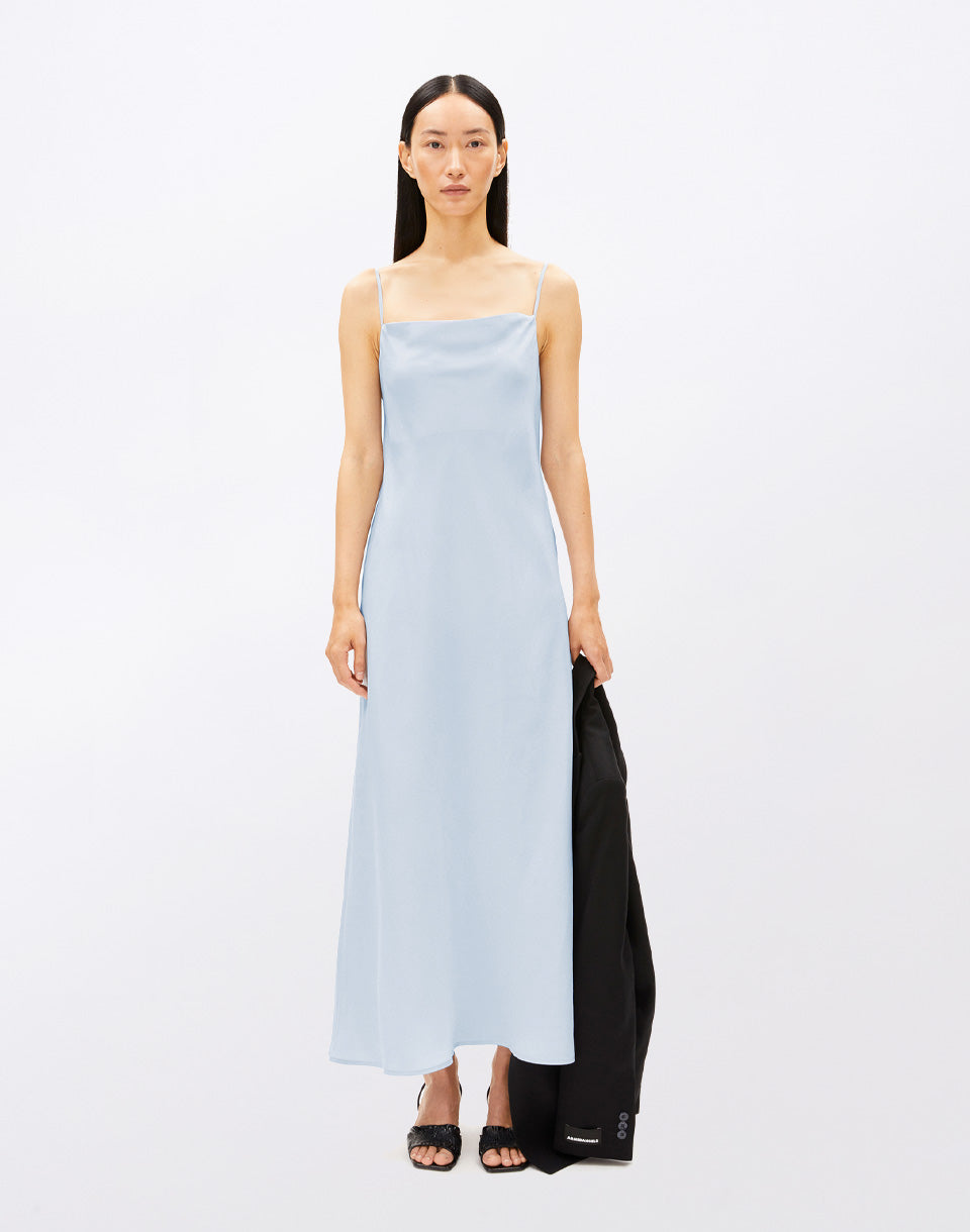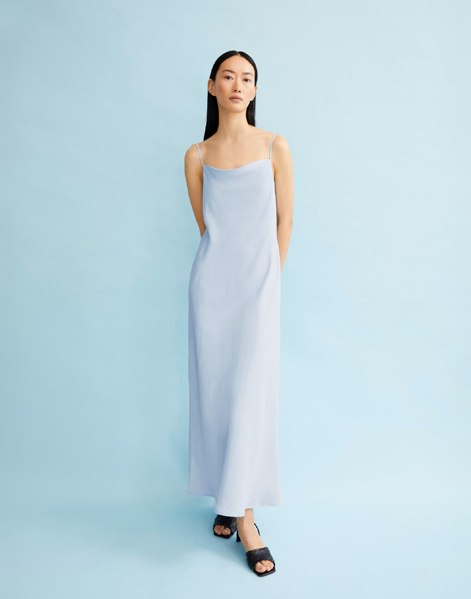 Armedangels Neleaa - une robe fluide combinant une coupe moulante confortable avec un décolleté cascade, soutenue par la marque durable allemande.