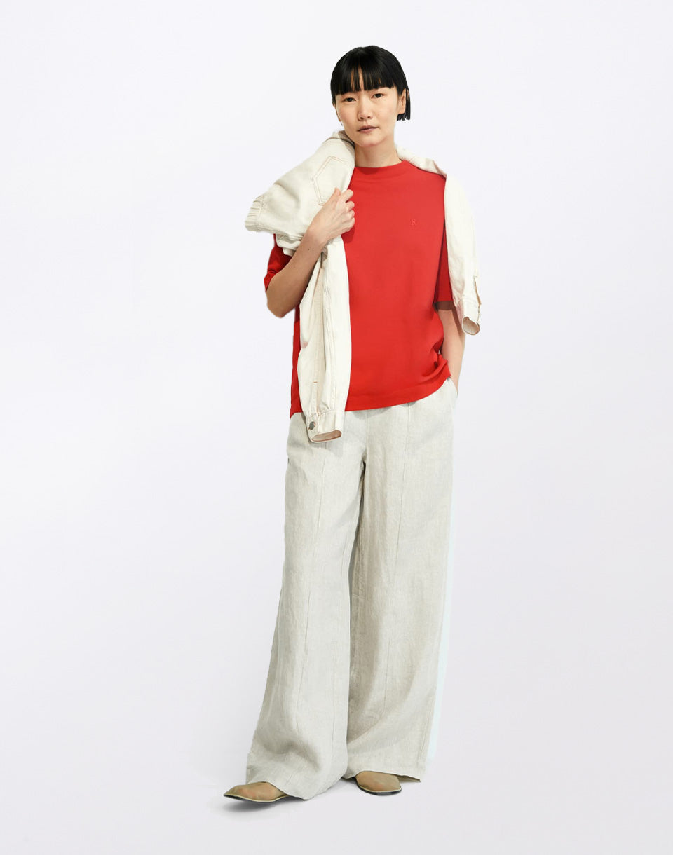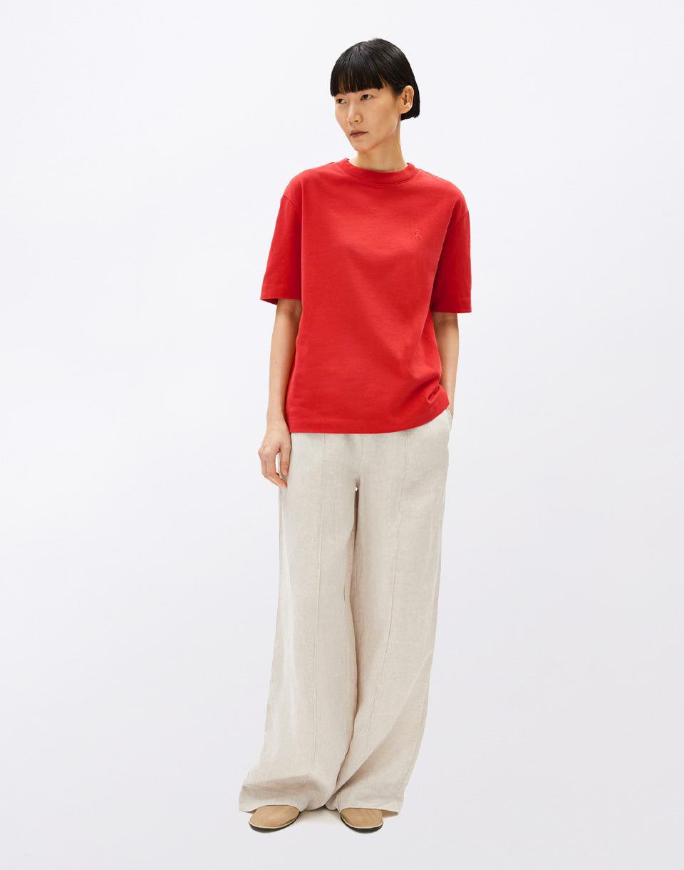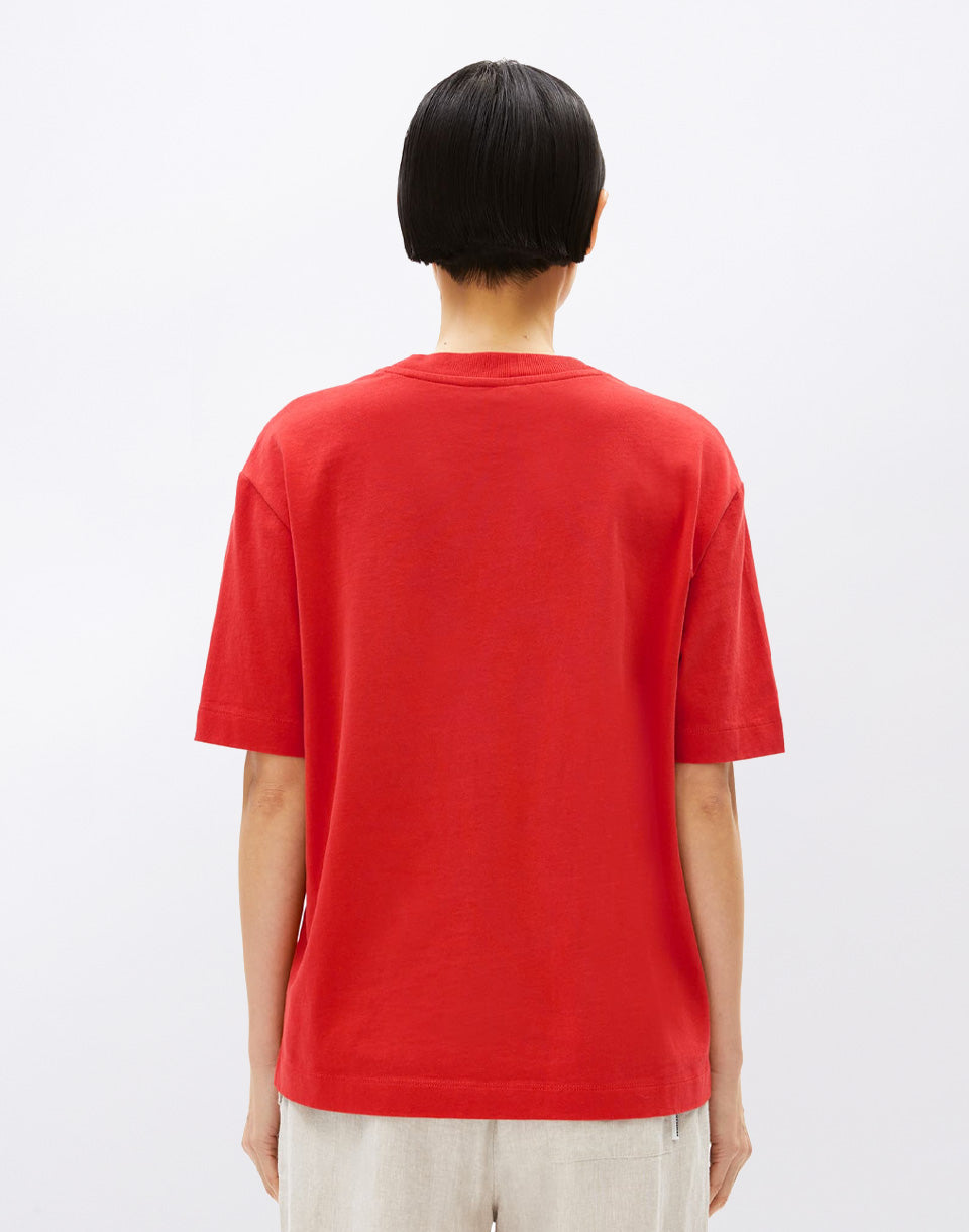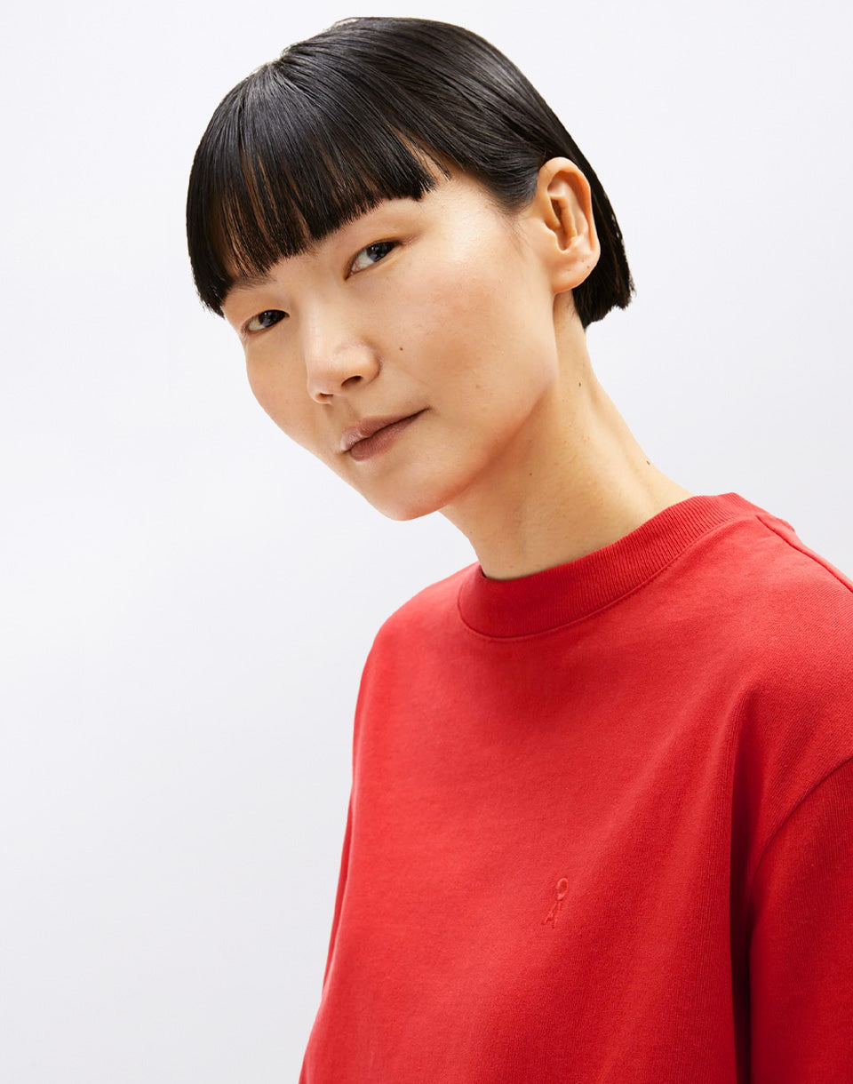 Armedangels Tarjaa - un t-shirt ample monochrome pour femme, fabriqué de manière équitable à partir d'un mélange de coton recyclé et biologique.