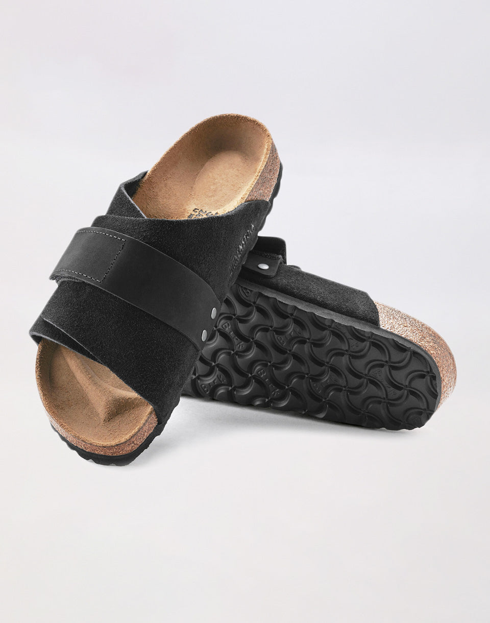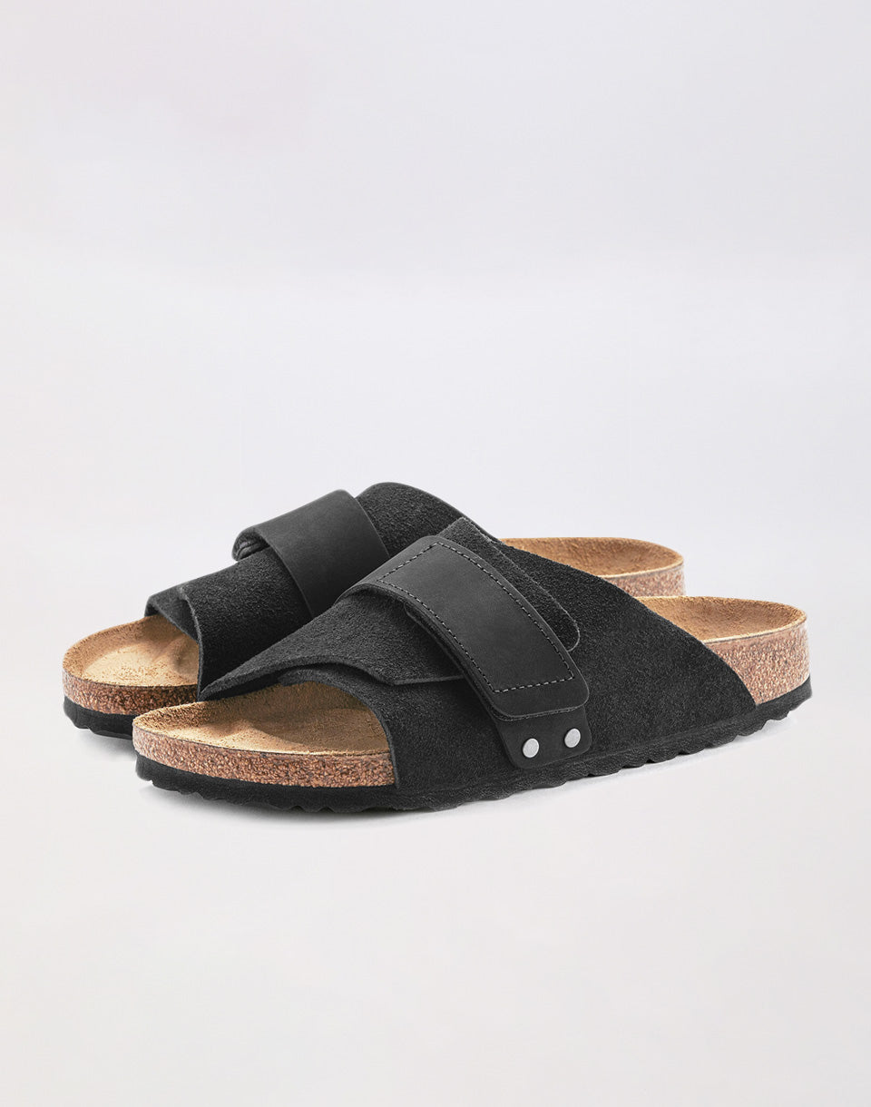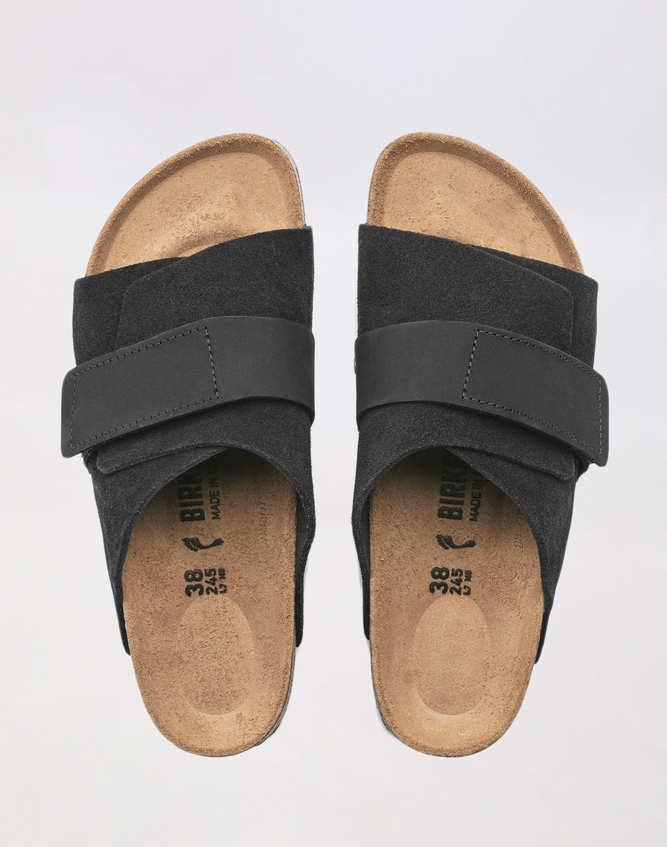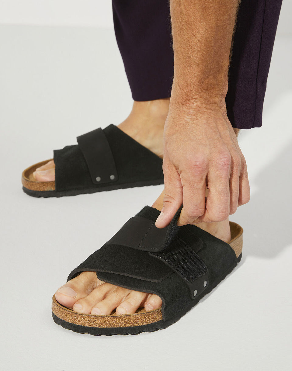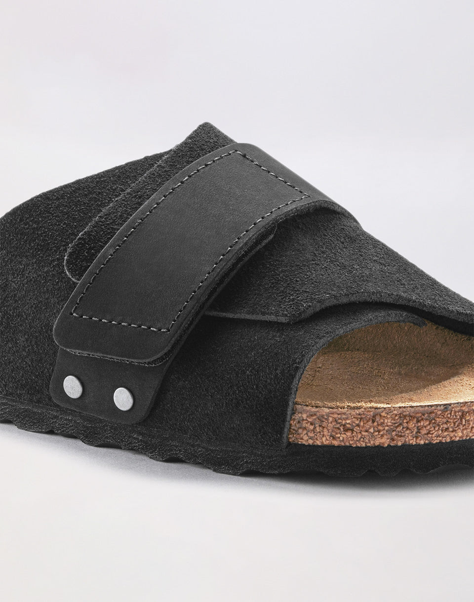 Birkenstock Kyoto VL - Pantres velcro allemandes de qualité en daim doux et cuir nubuck de haute qualité.