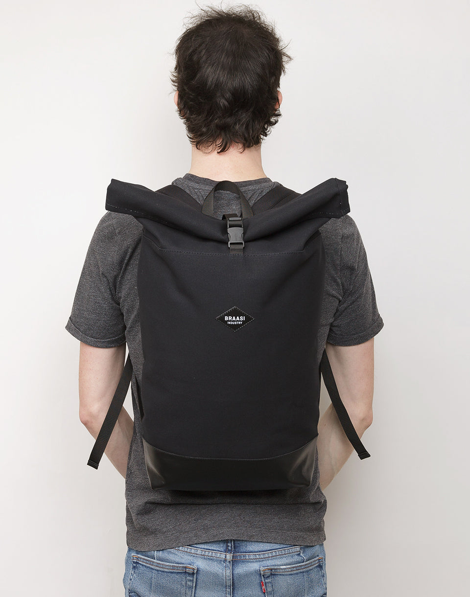 Braasi Industry Noir - sac à roulettes imperméable en toile de coton robuste.
