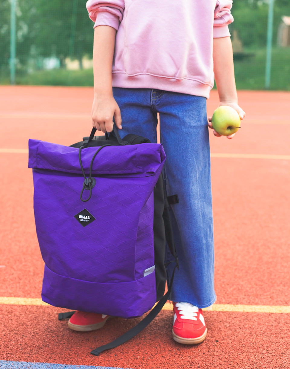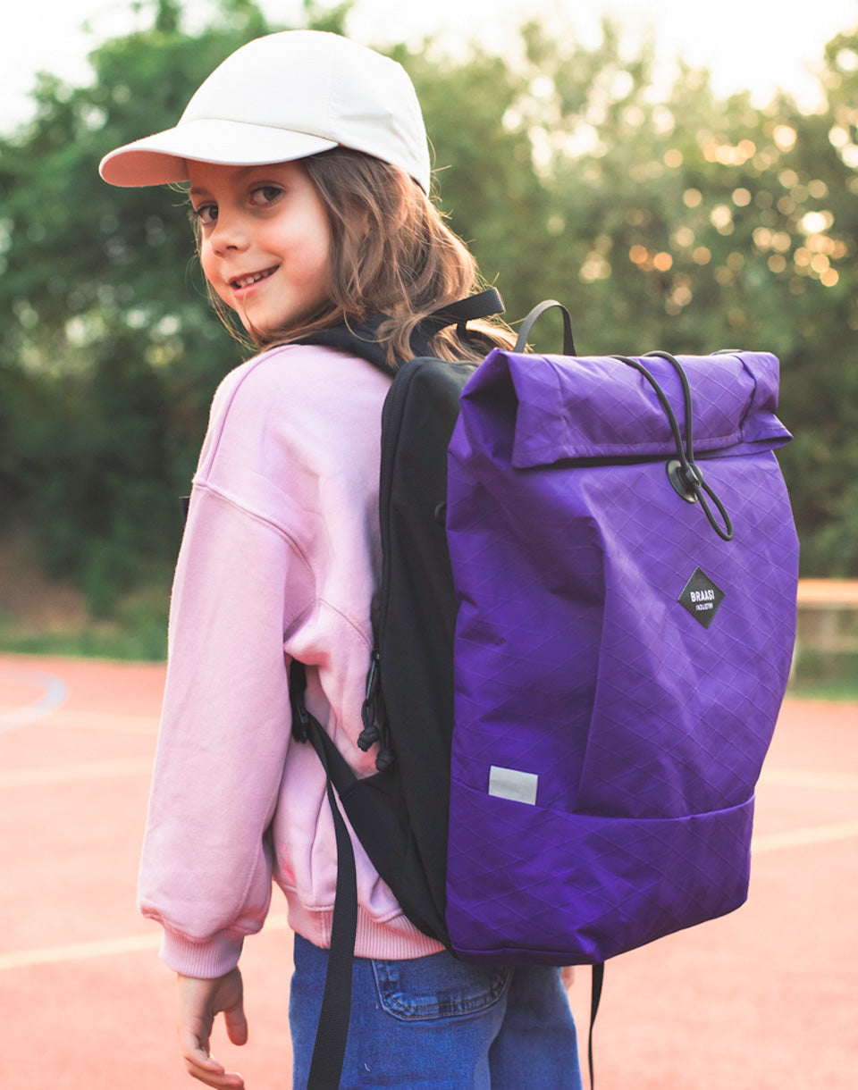 Braasi Industry Scholas - school backpack for small backs with high standards. Ultralight X-Pac®, clever articulation and a magnetic buckle that closes almost by itself.