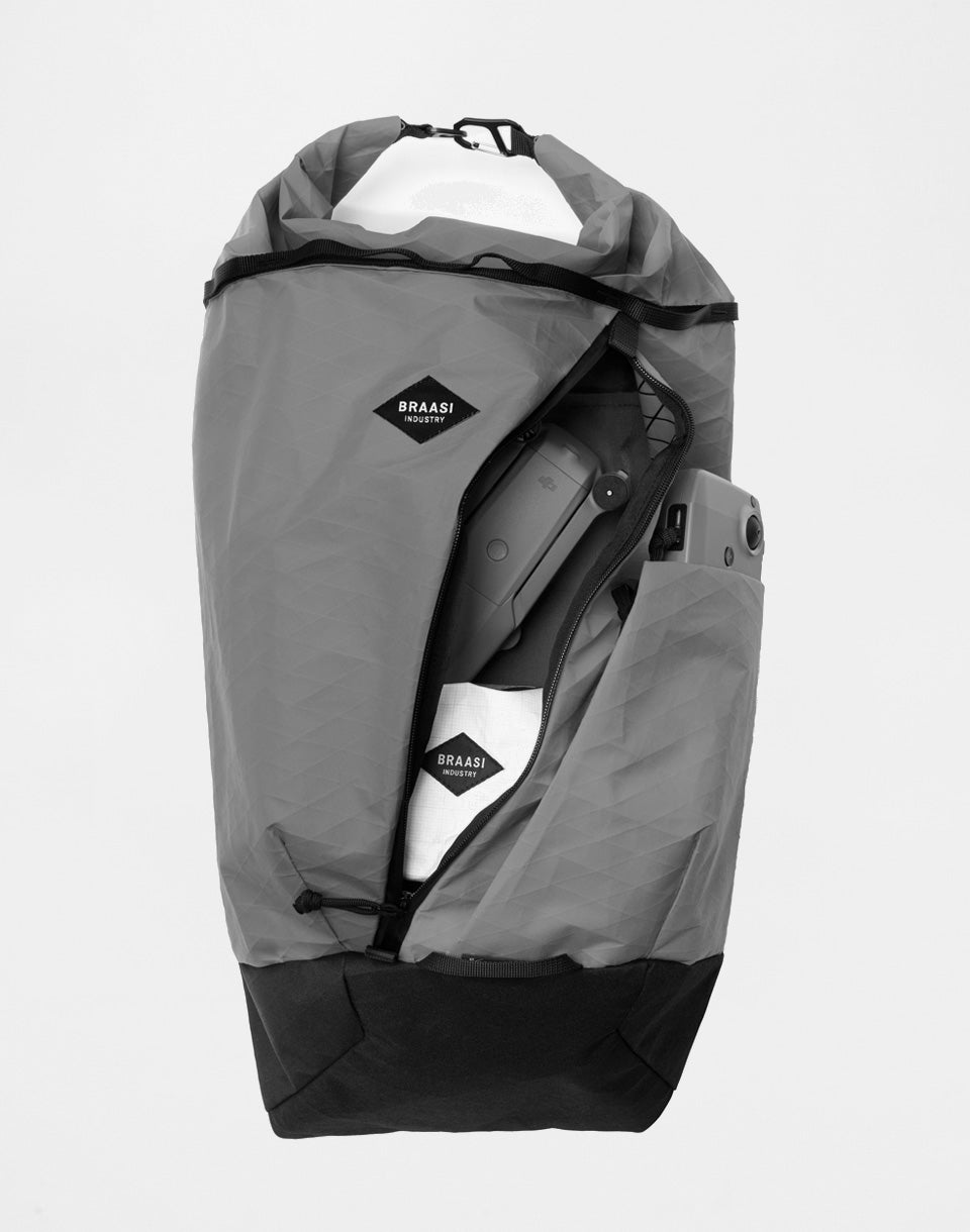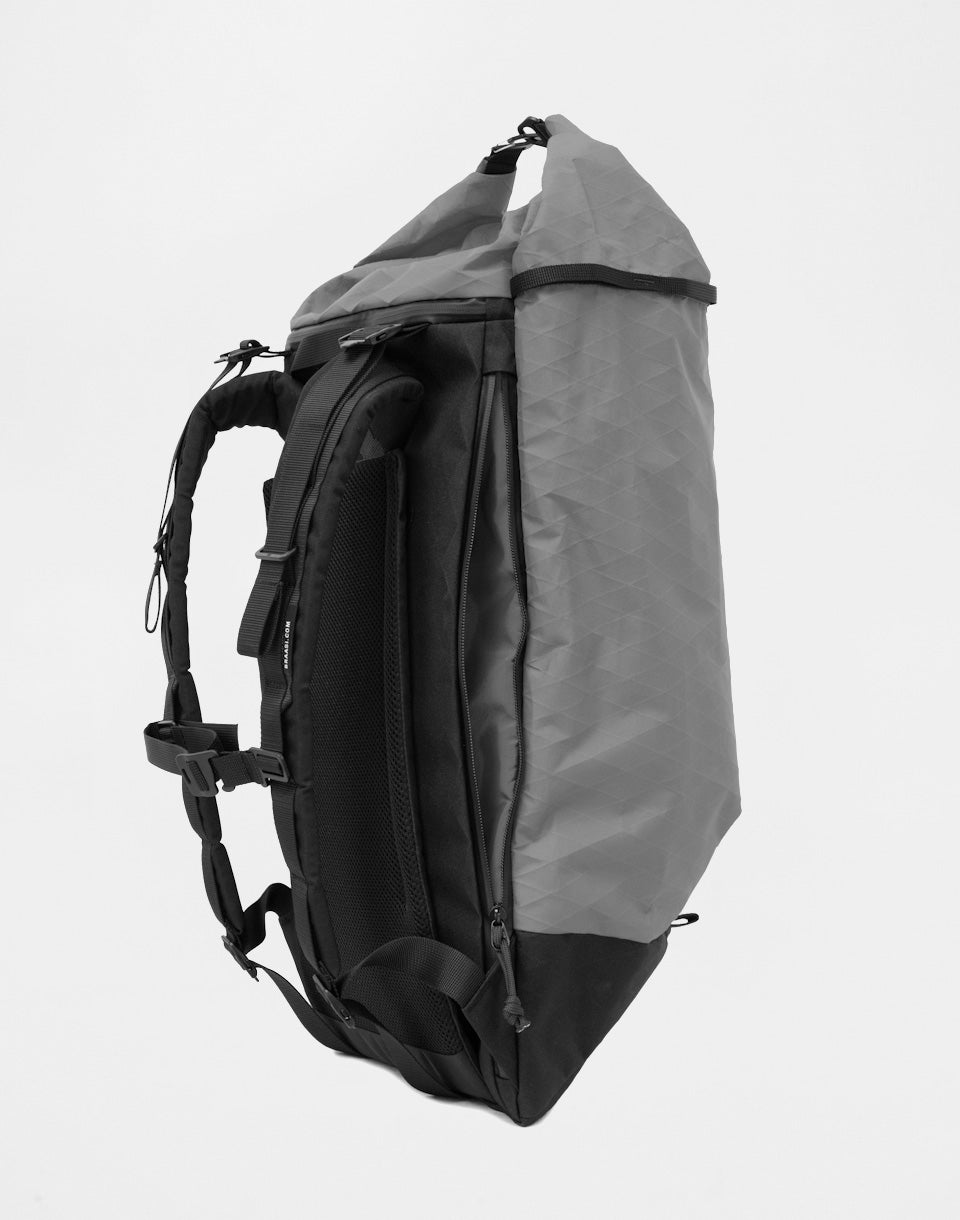 Braasi Industry Slash - a technical rolltop with zero tolerance for compromise. 32 litres, X-Pac® and Dyneema® composite fabric. Slash is lightweight, waterproof and sophisticated down to the last zip.