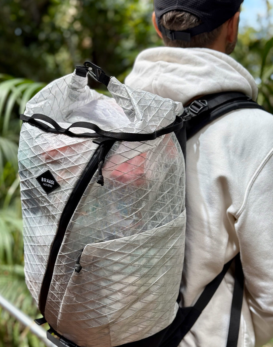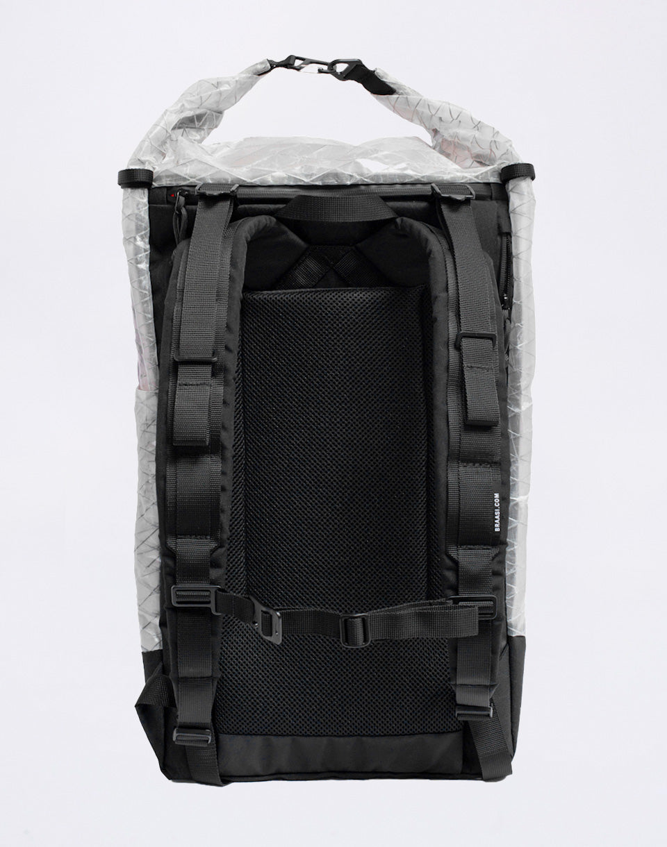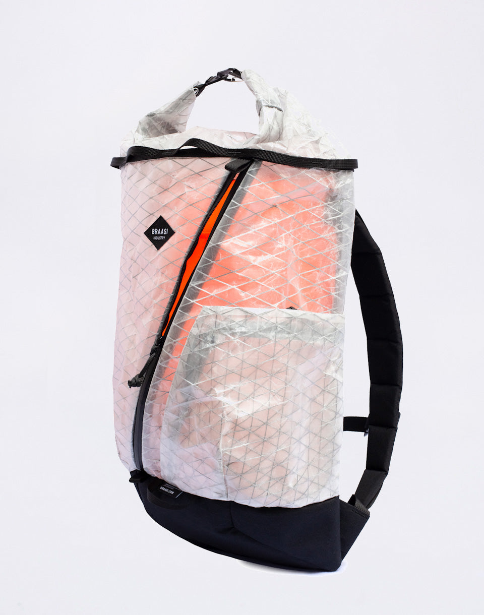 Braasi Industry Slash - technical rolltop in a unique translucent design. 32 litres, X-Pac® and Dyneema® composite fabric. Slash is lightweight, waterproof and sophisticated down to the last zip.
