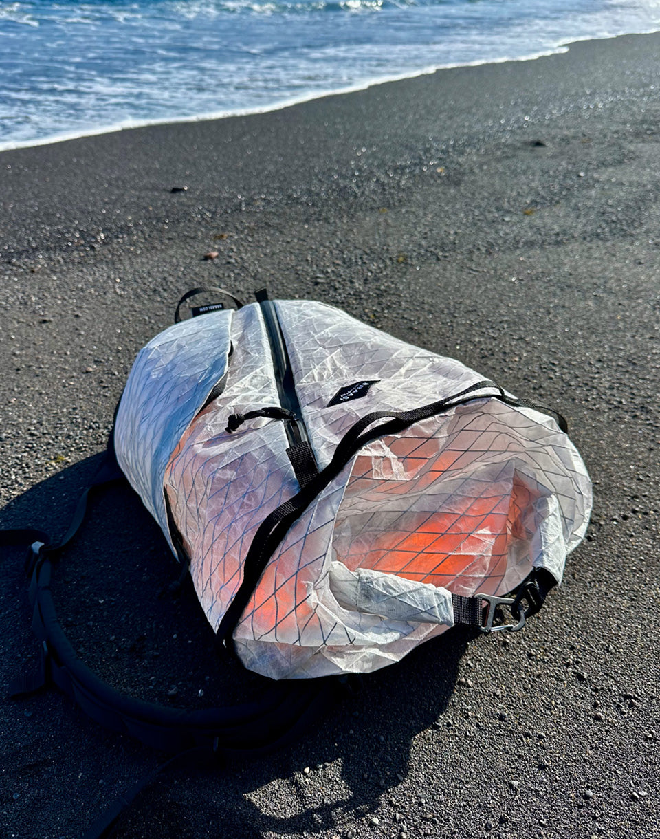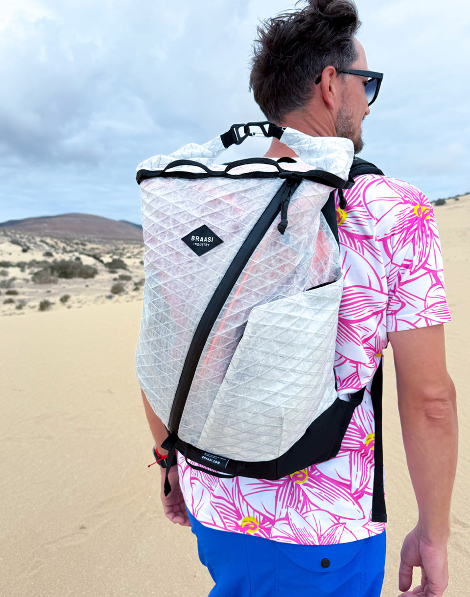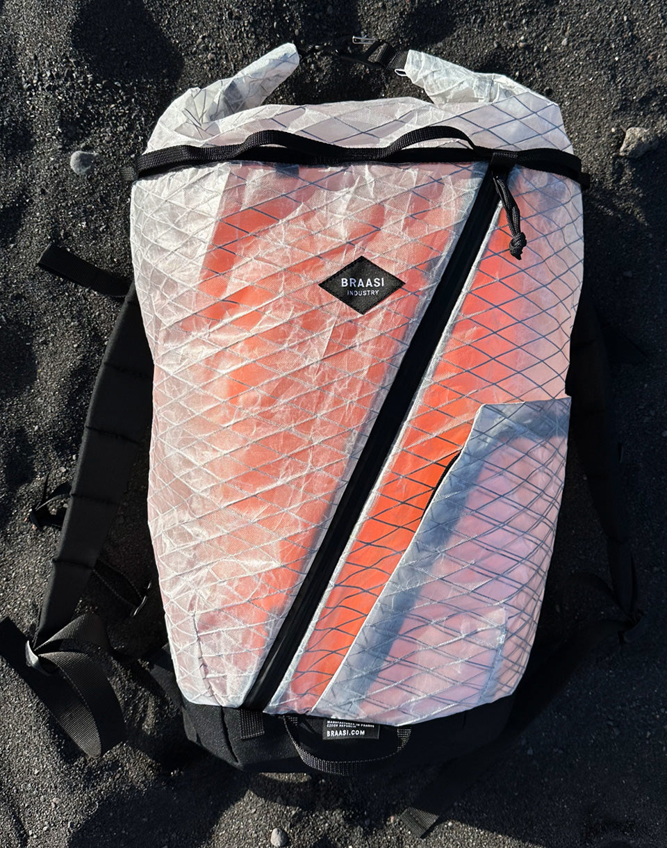 Braasi Industry Slash - technical rolltop in a unique translucent design. 32 litres, X-Pac® and Dyneema® composite fabric. Slash is lightweight, waterproof and sophisticated down to the last zip.